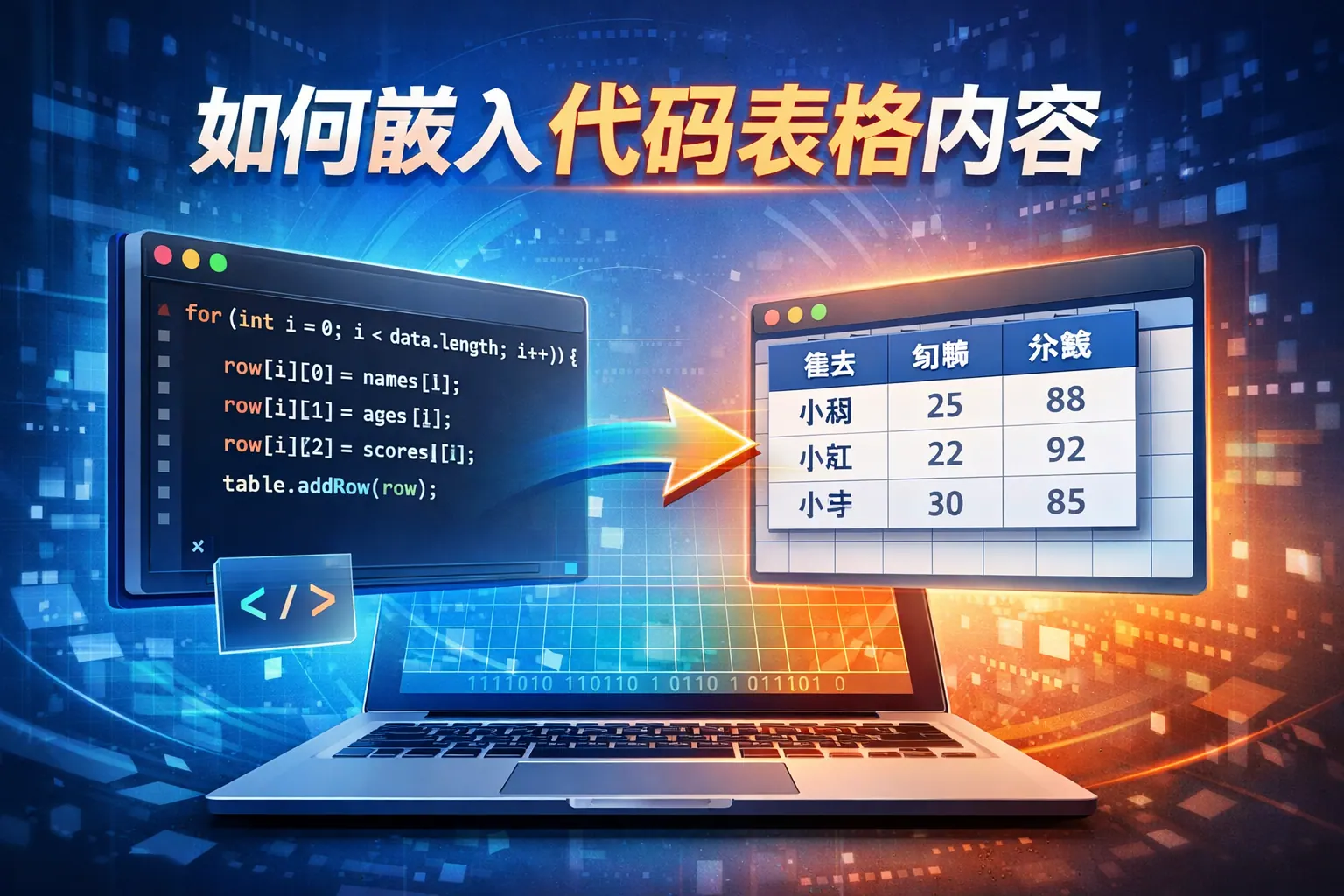如何嵌入代码表格内容中