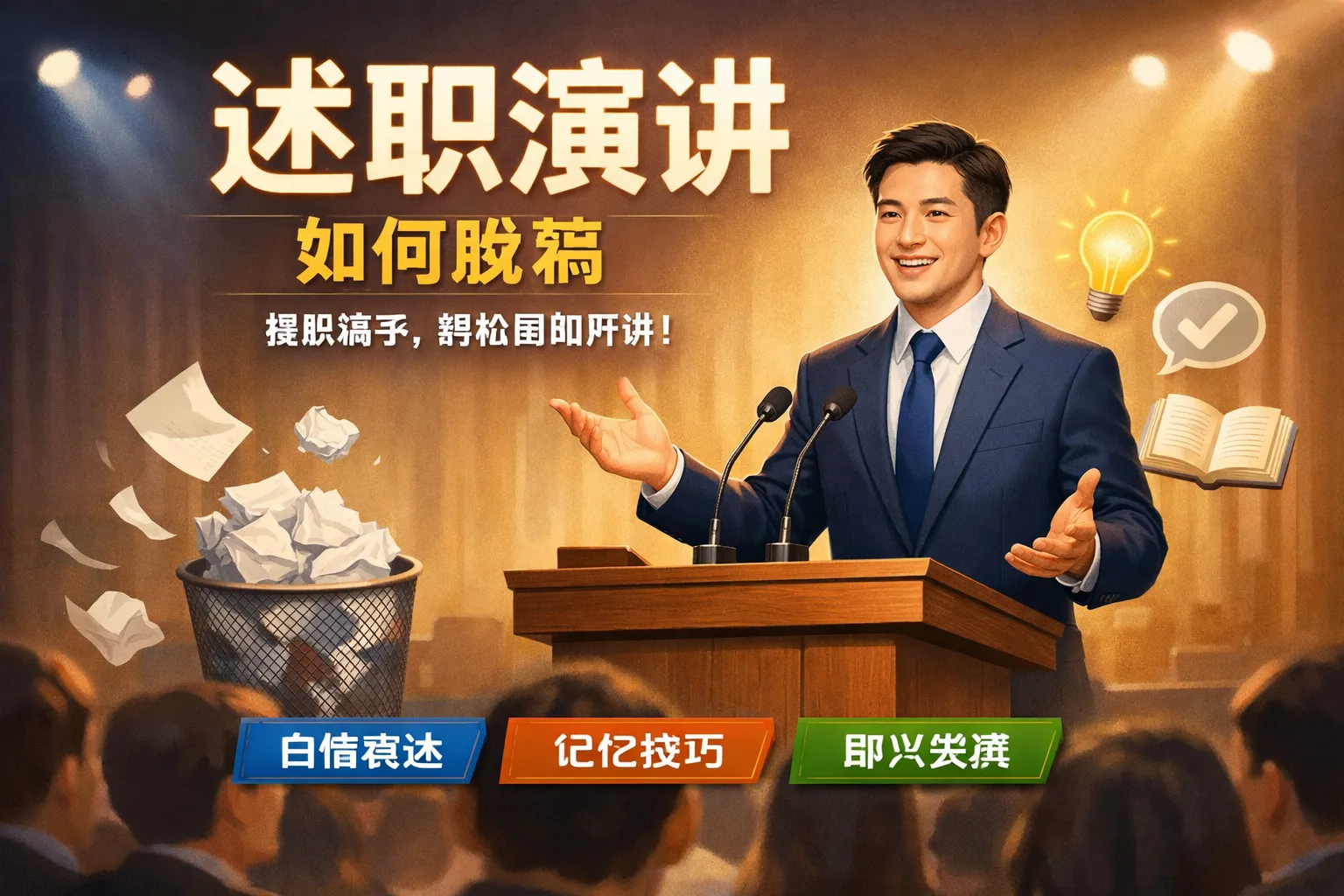 这篇文章围绕述职演讲脱稿展开,拆解了脱稿过程中的常见认知误区,系统讲解了逻辑锚点搭建、场景化联想记忆、轻量化肌肉训练、临场应急救场等实操方法,结合权威行业报告数据给出对内述职、对外汇报两类场景的脱稿适配方案,帮助职场人提升脱稿述职的流畅度与说服力,降低临场忘词概率,增强演讲的真实感染力