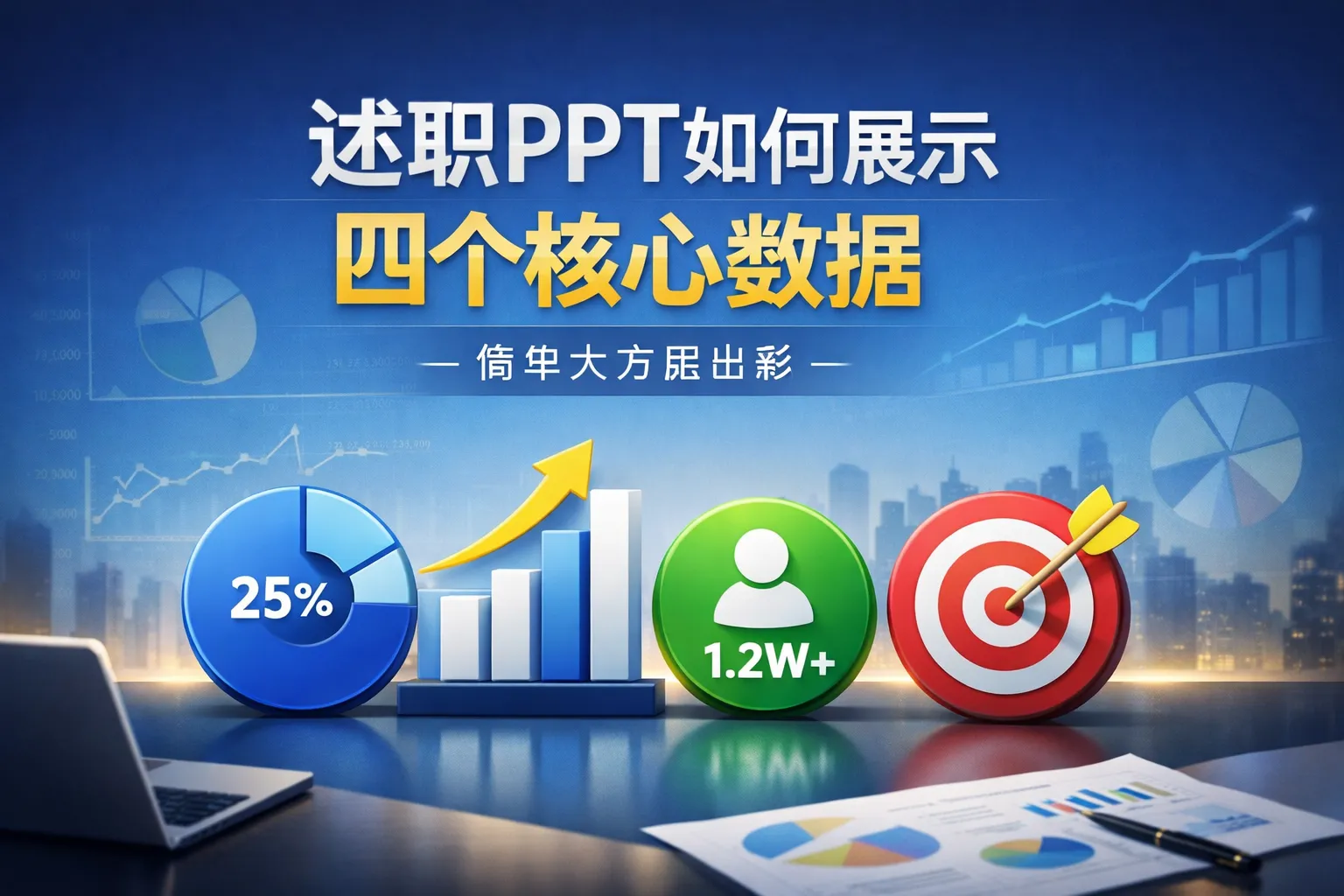 述职ppt如何展示四个核心数据简单大方