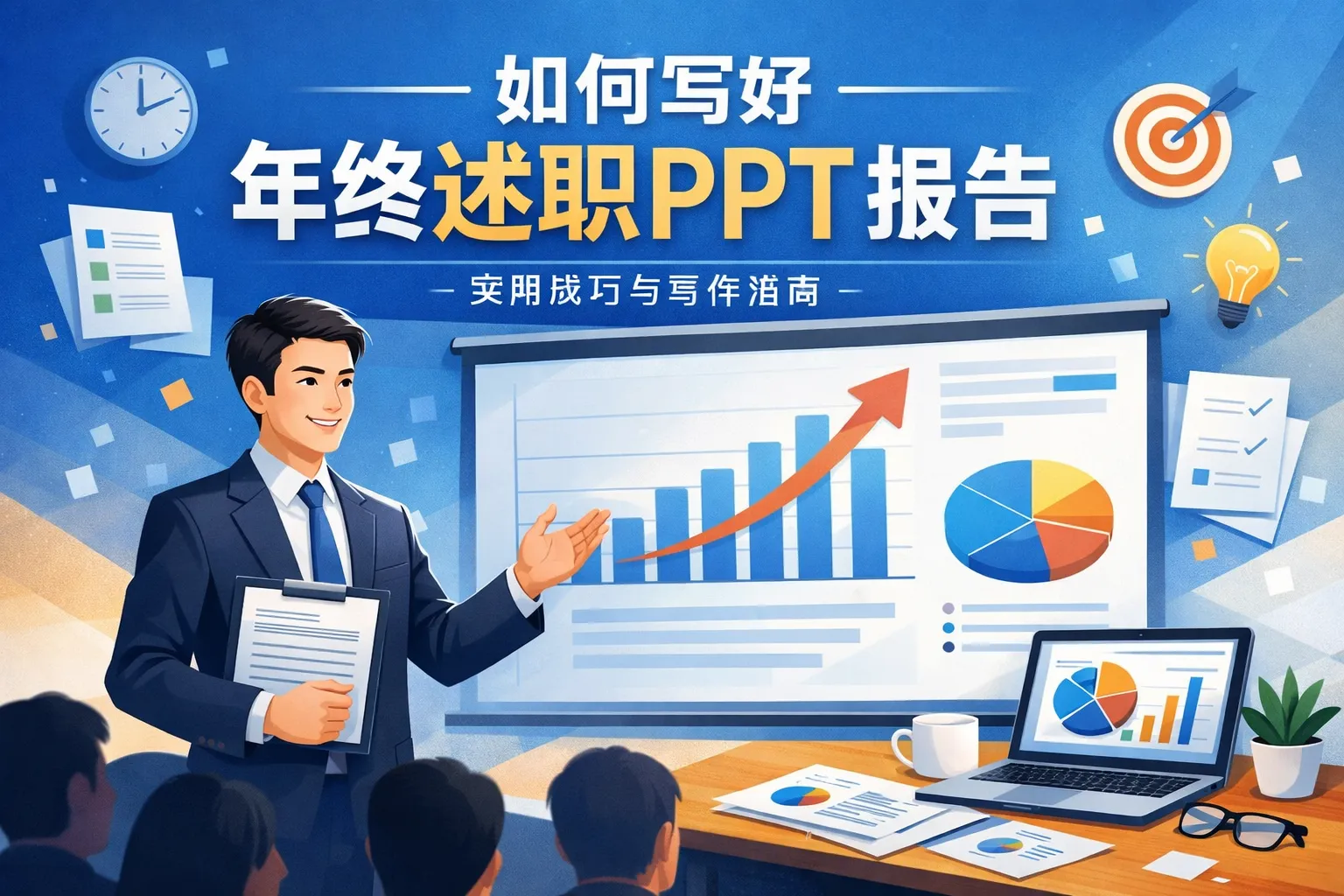 本文围绕优质述职PPT撰写展开,从锚定受众目标、搭建逻辑架构、强化数据可信度、优化视觉风格、规避常见踩坑到最终校验优化,结合行业报告数据与对比表格,阐述了从内容策划到落地执行的完整流程,帮助职场人打造符合决策逻辑的述职汇报材料