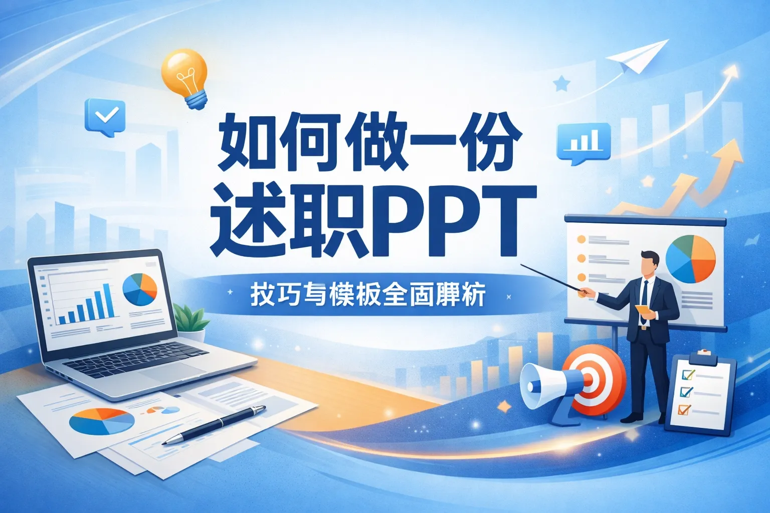 这份指南从内容策划、模板选择、可视化呈现、避坑和演练五个维度,详细讲解了述职报告PPT的全流程制作方法,结合权威行业报告数据给出实战技巧,帮助职场人搭建精准适配汇报场景的述职PPT,通过调整内容权重、优化视觉呈现和提前演练提升汇报通过率。