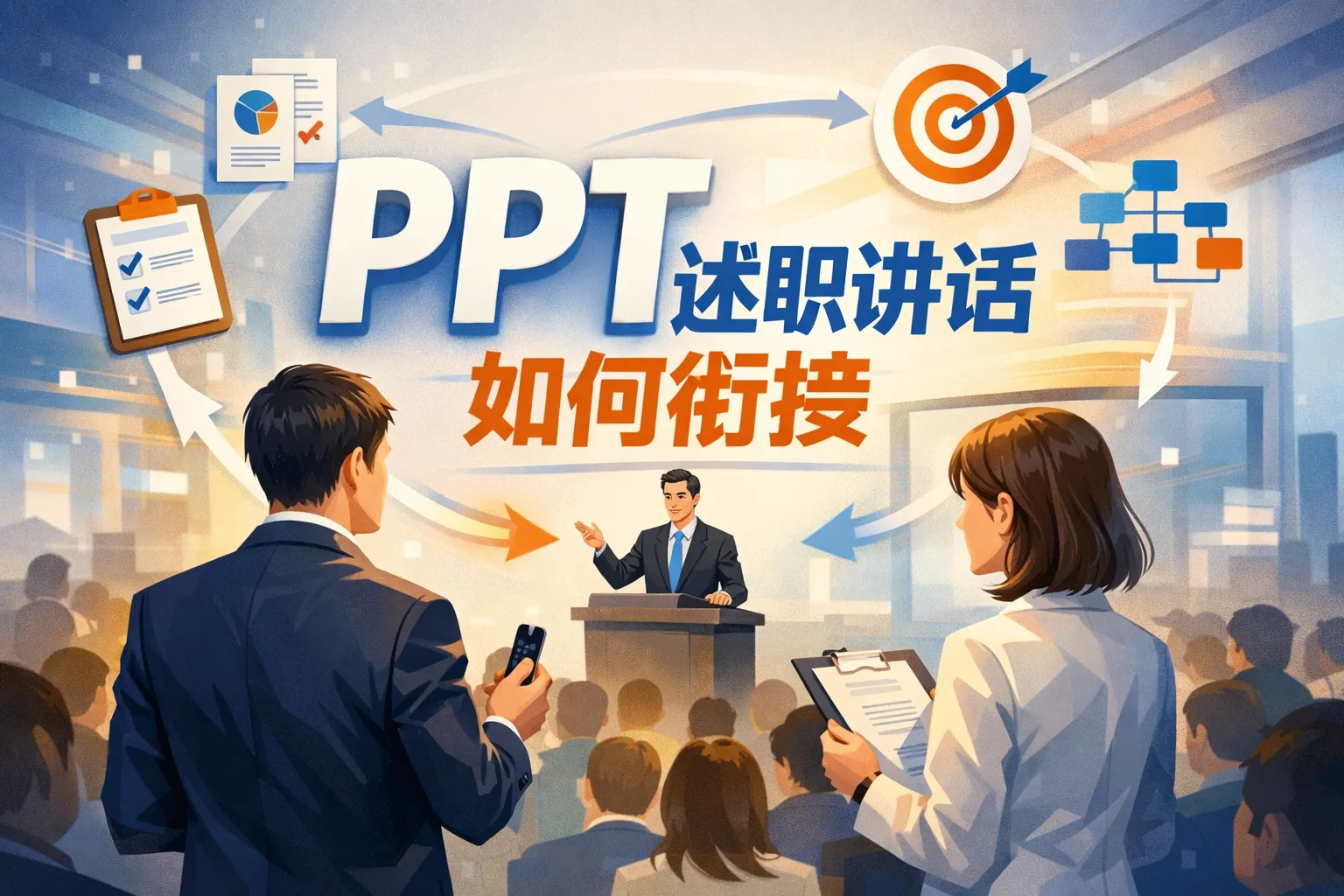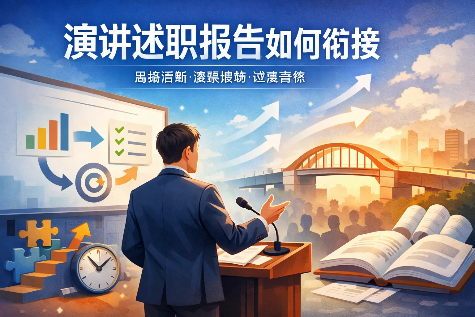 这篇文章围绕PPT述职讲话衔接展开,从开场、跨模块、数据成果、问题与规划、结尾五大核心维度,讲解适配不同场景的衔接话术、落地方法与常见误区规避策略,结合权威行业报告数据和衔接方式对比表格,帮助汇报者降低信息损耗,强化述职内容逻辑连贯性与说服力,助力完成职业价值的有效传递。