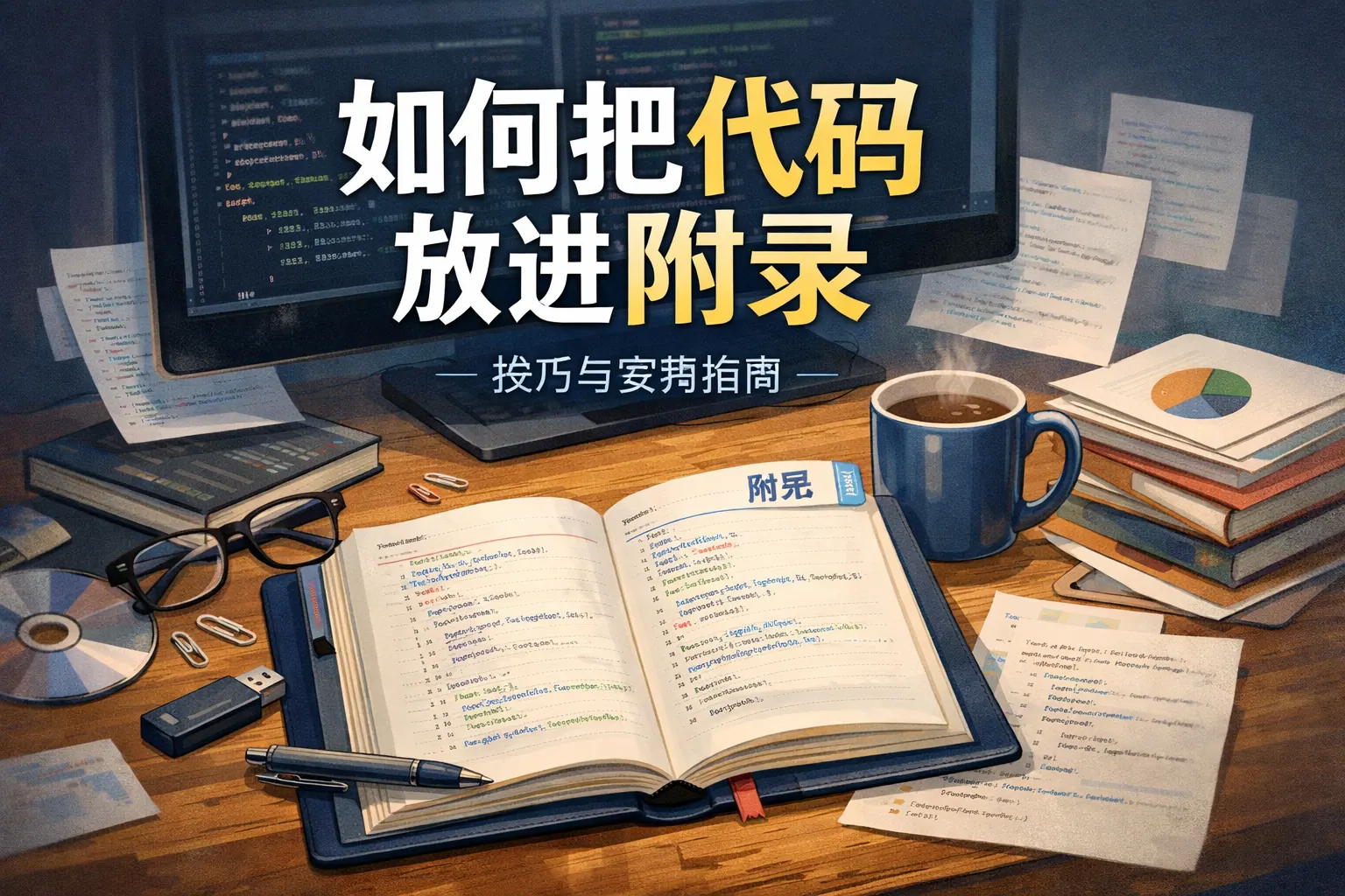 在论文或技术文档中,代码应放入附录而非正文,通过规范编号、等宽字体排版、语法高亮、版本标注及正文精确引用实现结构清晰与专业呈现。学术论文强调可复现性与版本说明,企业文档更注重代码版本管理与仓库链接。合理设计代码附录不仅提升文档可读性,还增强研究与项目成果的可验证性与长期维护价值。