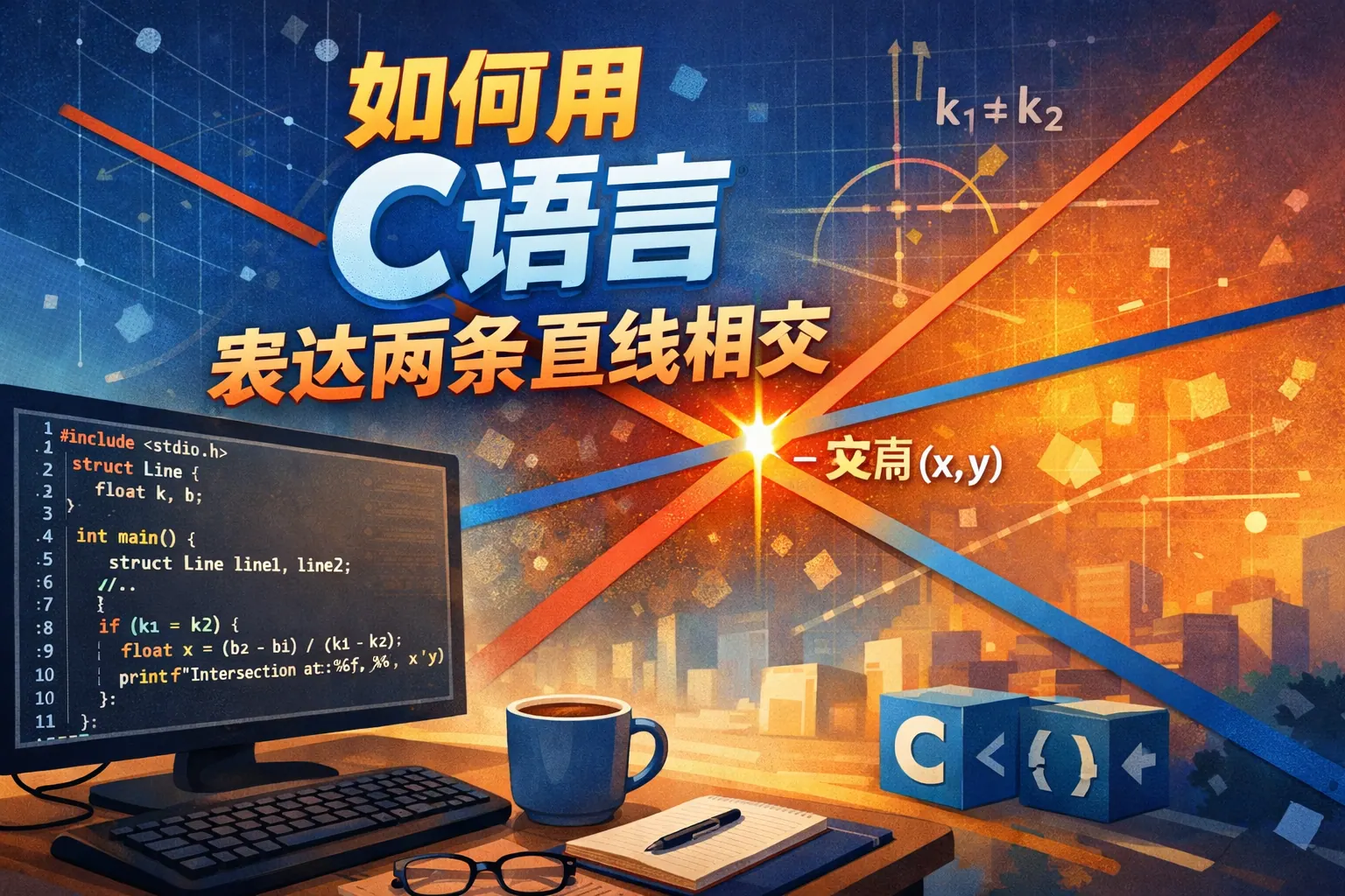 如何用c语言表达两条直线相交