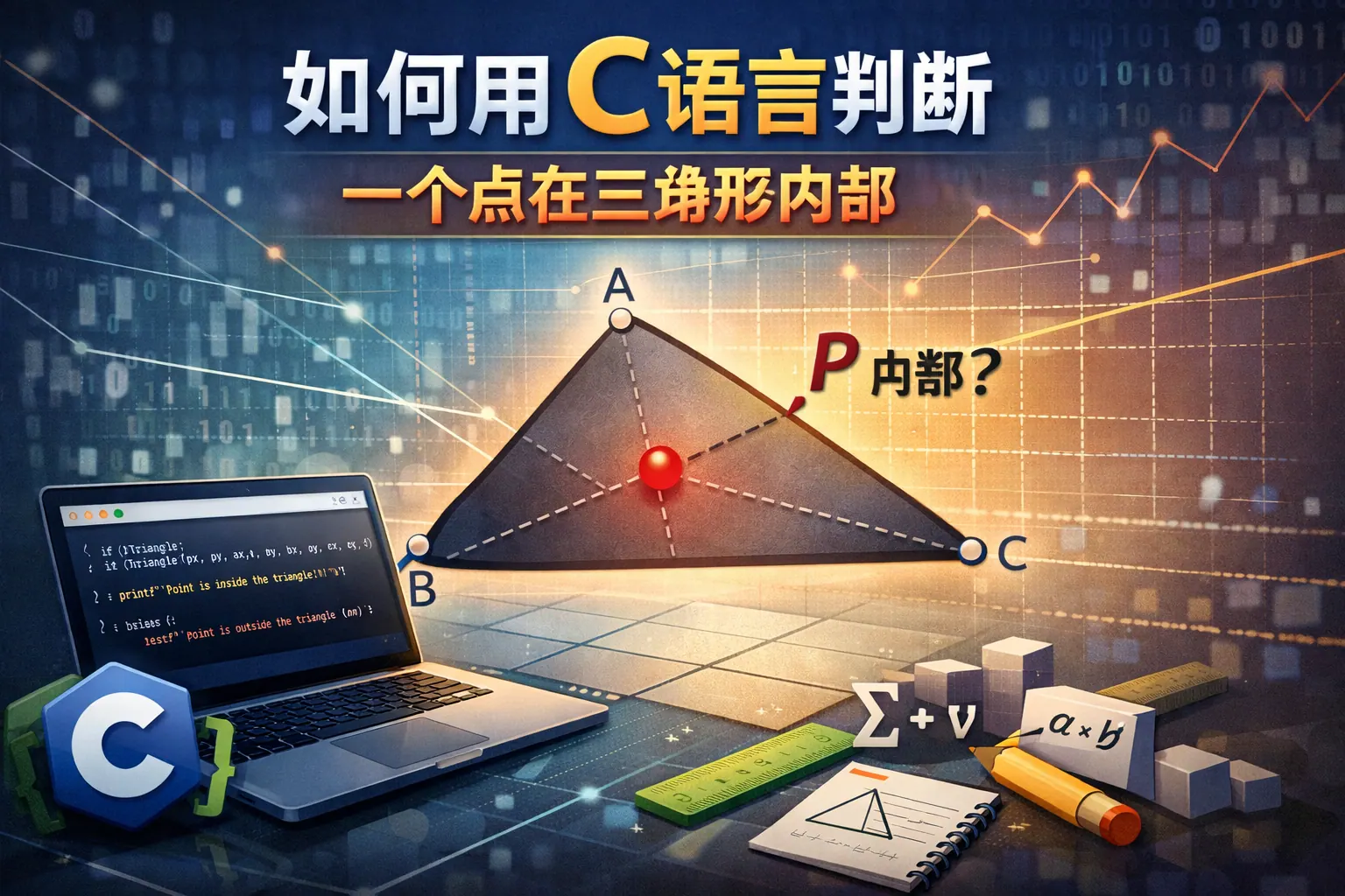 在 C 语言中判断一个点是否在三角形内部,最常用的方法是向量叉积法、面积法和重心坐标法。其中向量叉积法效率最高、最适合工程应用;面积法逻辑直观,适合理解原理;重心坐标法常用于图形插值与渲染系统。实际开发中需结合浮点误差控制与边界处理,推荐使用叉积法配合误差阈值判断,以保证稳定性与性能表现。