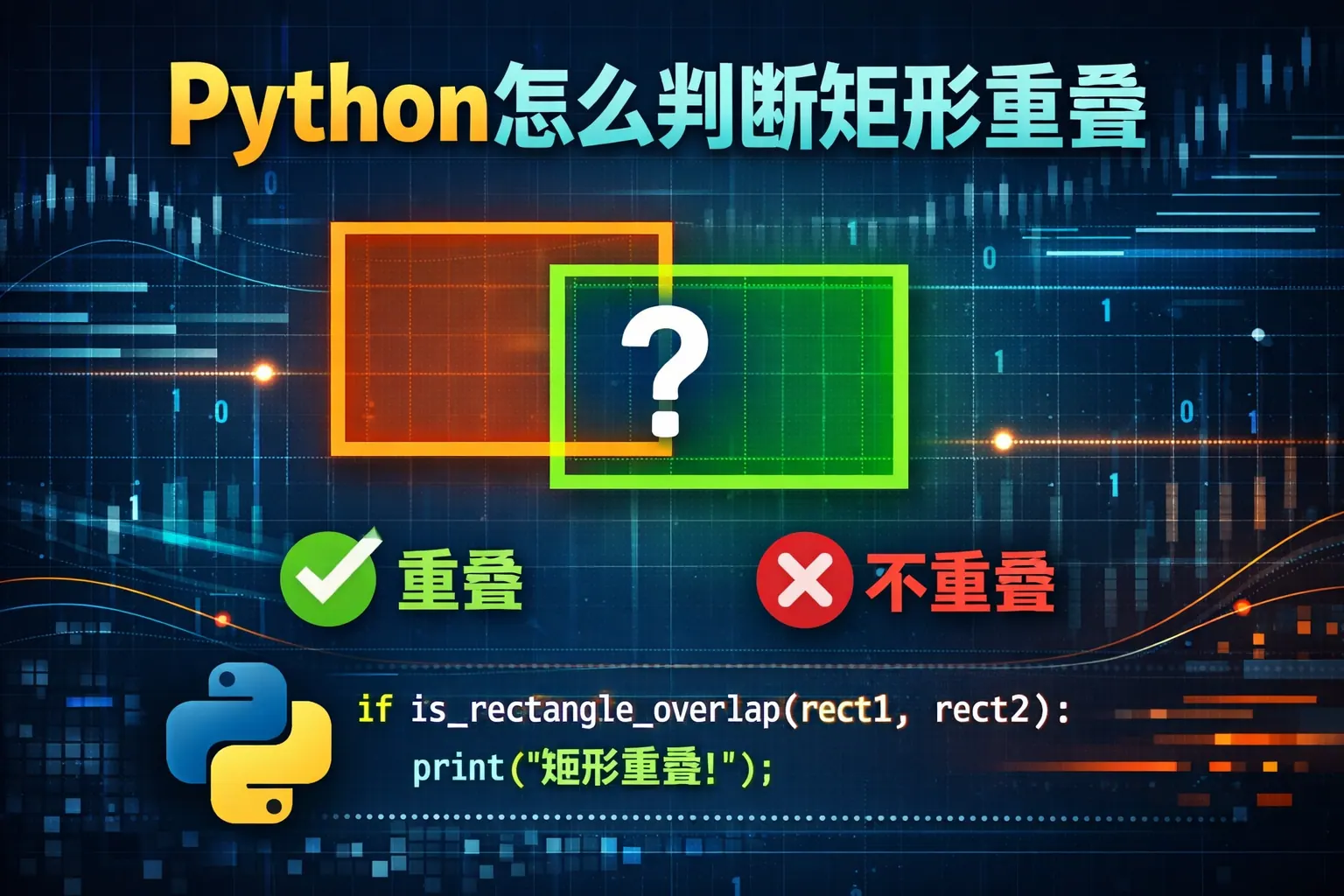 在 Python 中判断矩形是否重叠的核心方法是比较两个矩形在 x 轴与 y 轴方向上的区间是否同时存在交集,只要两个方向均有重叠即可判定相交,否则必然分离。实际实现中可采用排除法进行 O(1) 时间复杂度判断,并根据业务需求决定是否将边界接触视为重叠。对于大量矩形数据,应结合排序扫描或空间索引优化性能。在复杂几何场景中可借助专业库提升可靠性。掌握区间交集这一底层原理,是解决矩形重叠问题的关键。