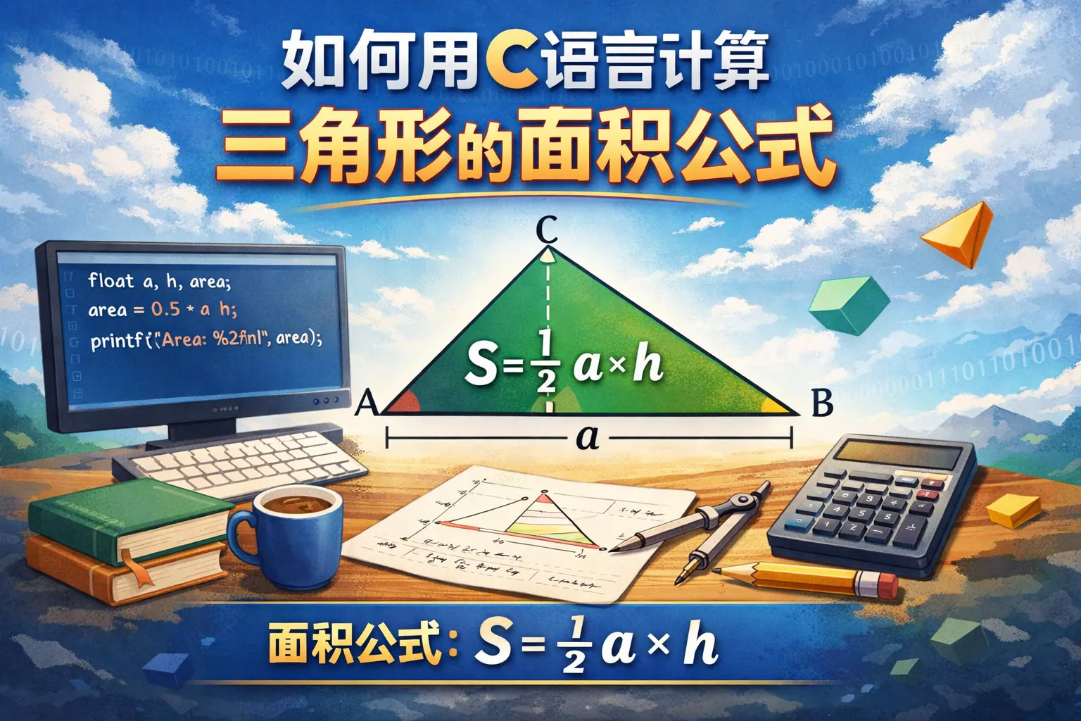 本文系统讲解了如何用C语言计算三角形面积,重点分析了底高公式、海伦公式和坐标法三种常见方法的数学原理与代码实现。通过完整示例与对比表格说明了不同公式的适用场景、精度差异与性能特点,并结合标准文档说明浮点运算与数学库使用注意事项。文章还介绍了合法性判断与函数封装技巧,帮助读者在实际开发中选择最合适的三角形面积计算方案。