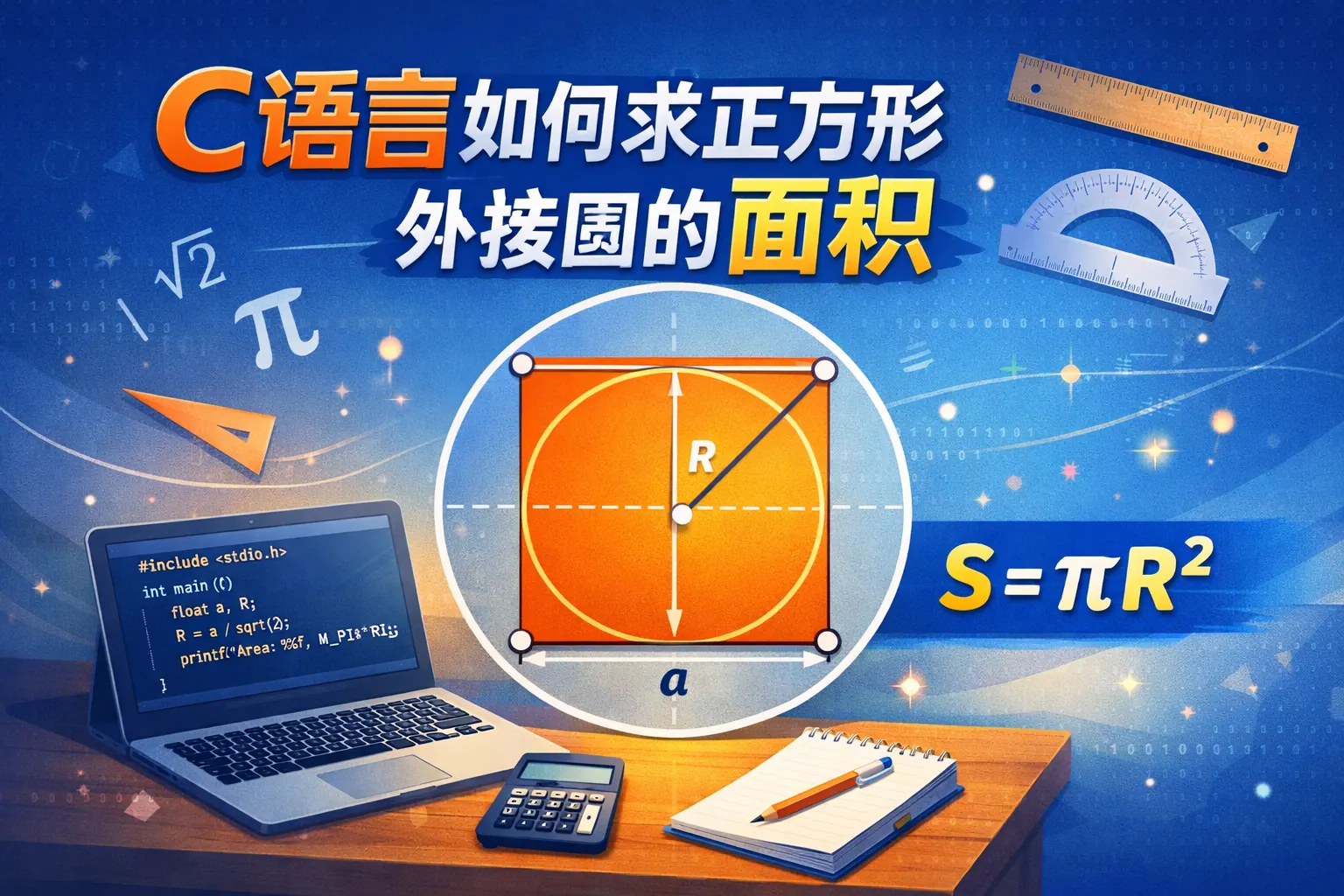 c语言如何求正方形外接圆的面积