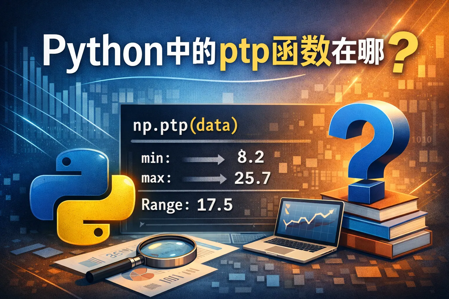 Python中的ptp函数并不属于标准库,而是位于NumPy库中,用于计算数组的极差,即最大值减最小值。它可以通过numpy.ptp()或数组对象的.ptp()方法调用,支持多维数组与轴向计算,常用于数据分析、图像处理和特征工程等场景。相比手动使用max减min,ptp在大规模数据下具有更高性能和更好的向量化优势,是科学计算中常见且重要的统计函数。