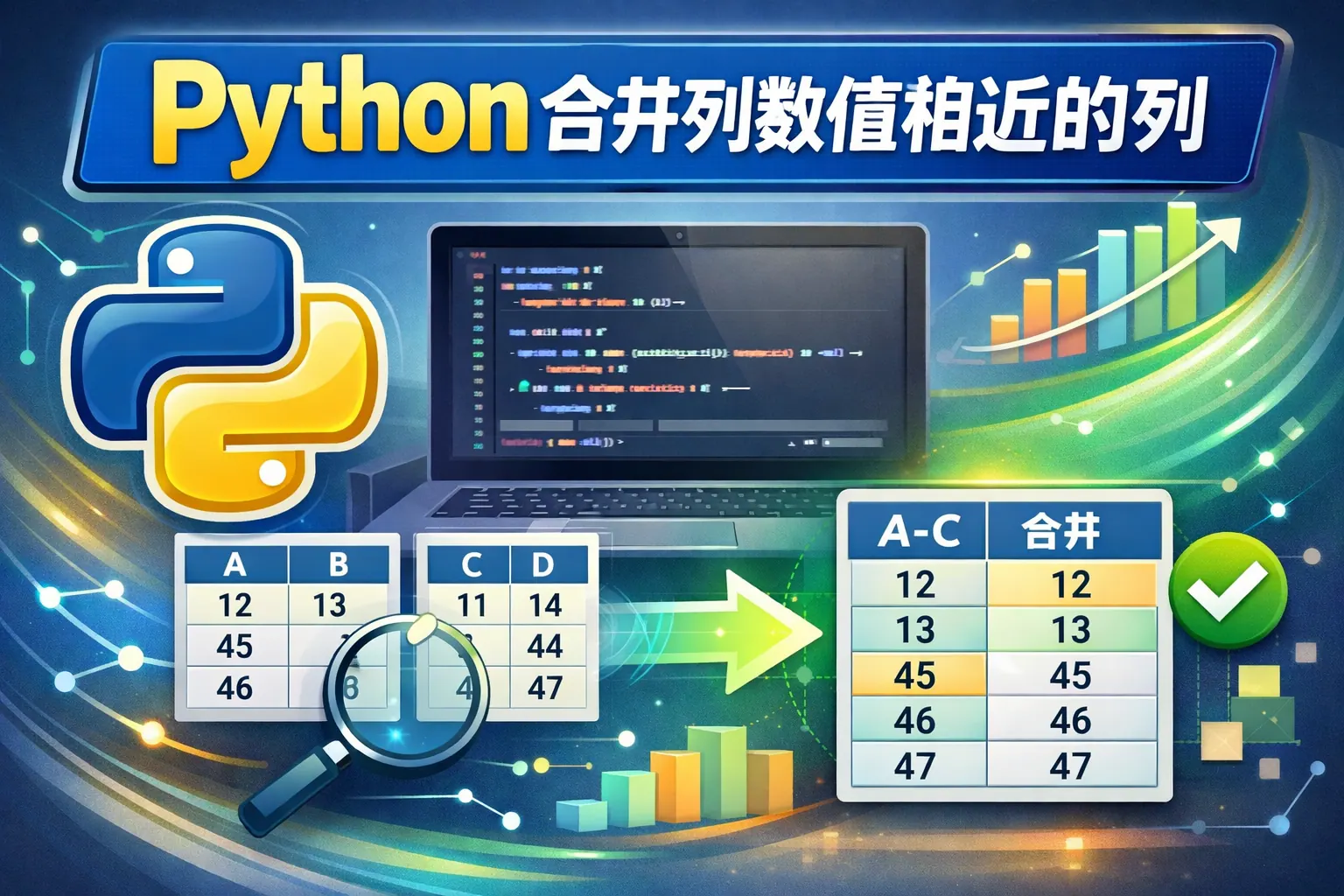 Python合并列数值相近的列