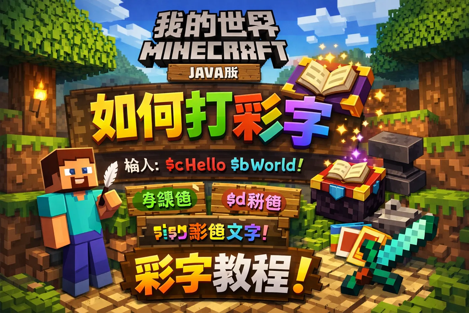我的世界java版如何打彩字