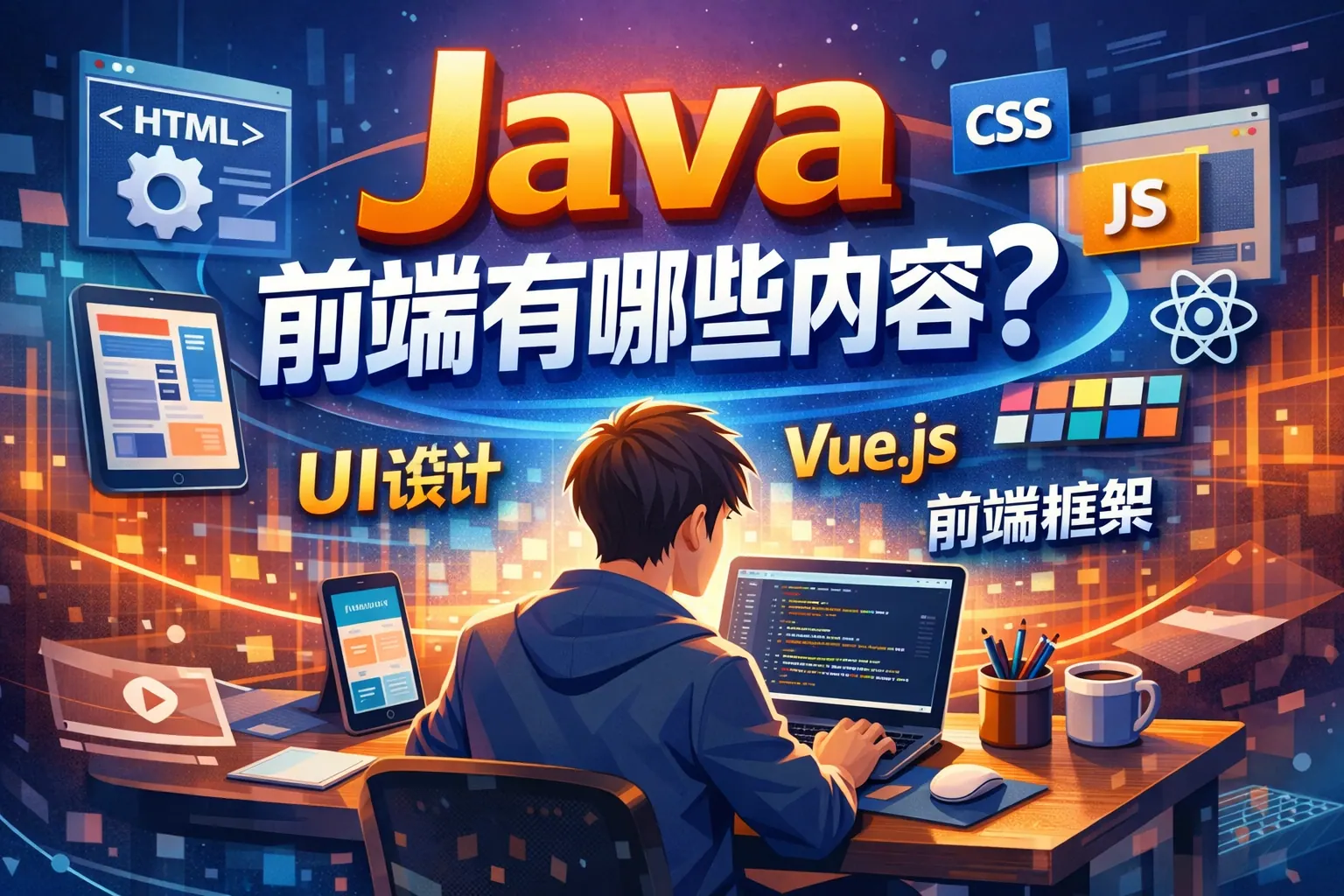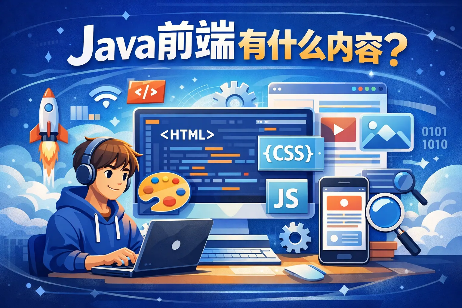 Java 前端并不是用 Java 编写页面,而是在 Java 技术体系下从事前端开发的一种角色形态。它的核心内容包括基础 Web 技术、前端框架与组件化、前后端分离协作、工程化体系以及对 Java 后端接口和业务结构的理解。相比偏视觉的前端岗位,Java 前端更关注企业级系统中的业务逻辑、数据交互和长期维护能力。未来这一方向将继续向工程化和全栈化演进。