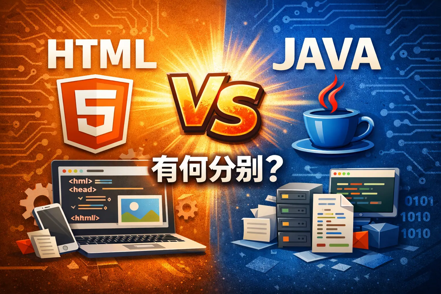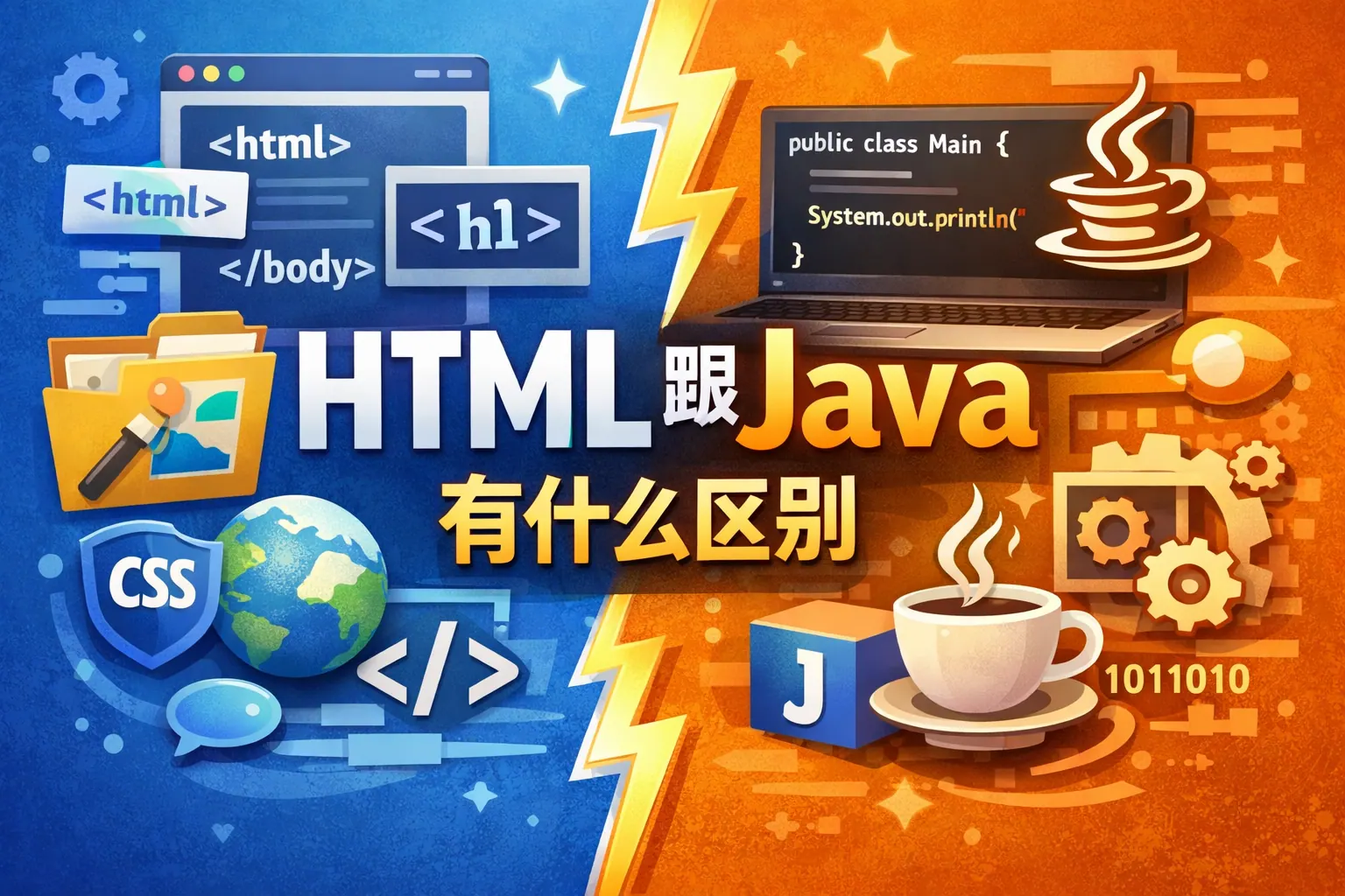 HTML 与 Java 的核心区别在于:HTML 是用于构建网页结构的标记语言,主要负责页面内容展示;Java 是面向对象的编程语言,主要用于实现程序逻辑和开发应用系统。HTML 运行在浏览器中,语法简单,适合入门;Java 通过虚拟机运行,具备完整编程能力,适用于企业级开发。两者在用途、运行机制、学习难度与职业发展方向上差异明显,但在现代 Web 开发中通常协同使用,共同构建完整的软件系统。