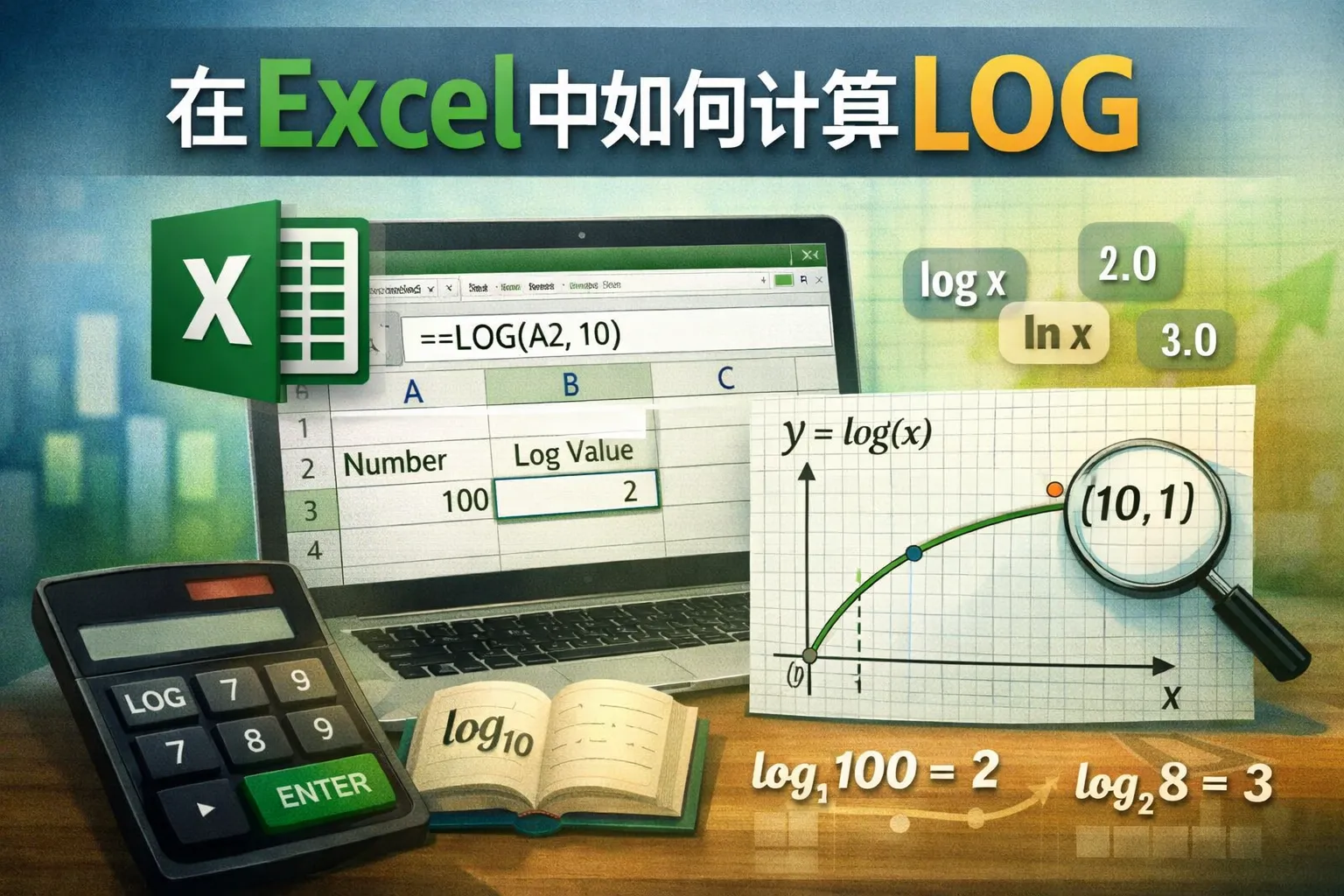 在excel中如何计算log