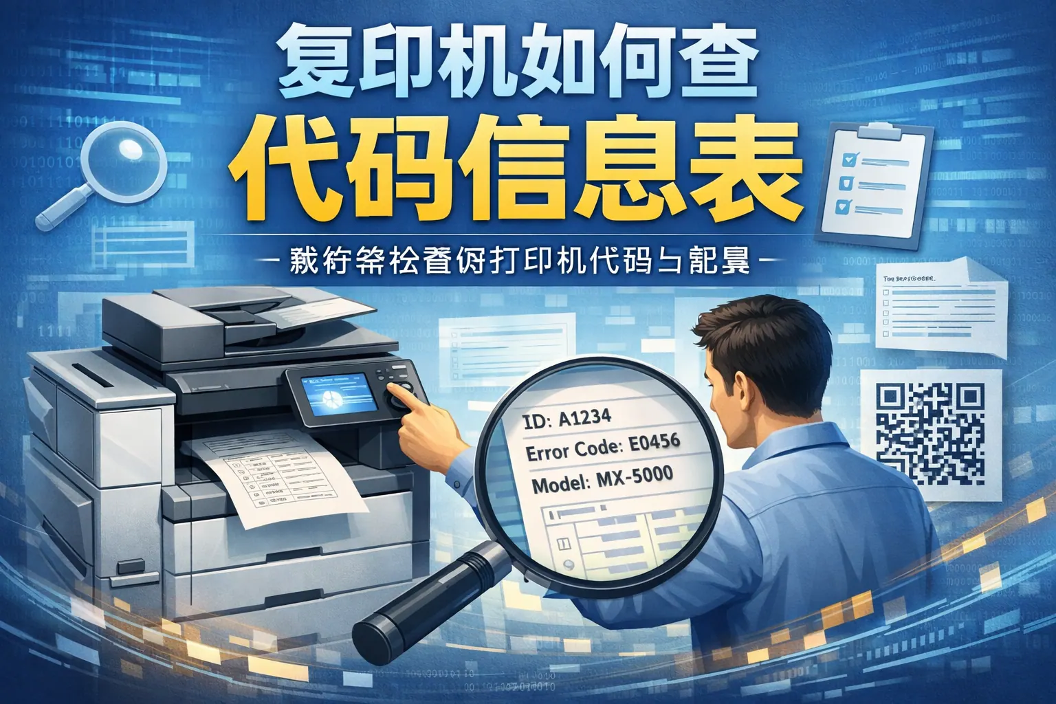 复印机查代码信息表的关键在于先正确获取完整错误代码,再结合设备型号查阅官方代码对照表进行解读。代码通常包含故障编号、原因及处理建议,通过屏幕显示、错误报告或维修模式均可获取。企业应建立代码记录与分类管理机制,将故障数据纳入运维体系,以提升设备管理效率。随着远程诊断和智能化运维的发展,复印机代码查询正向数字化与数据化方向演进。