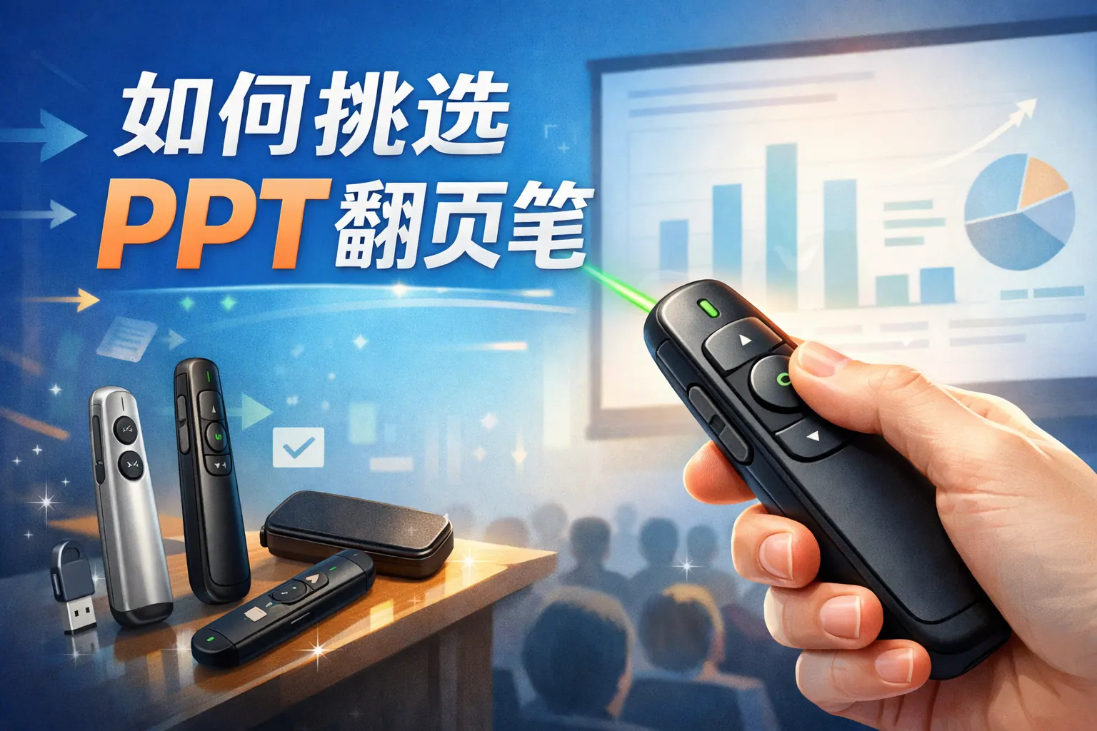 挑选PPT翻页笔应围绕使用场景、连接方式、稳定性和人体工学设计展开。日常会议优先选择2.4GHz即插即用型号,大型会场关注控制距离与激光可见度,移动办公可考虑蓝牙版本。同时比较红光与绿光差异、供电方式及续航能力,选择做工可靠、兼容主流系统的产品。合理匹配需求与预算,才能获得稳定高效的演示体验。
