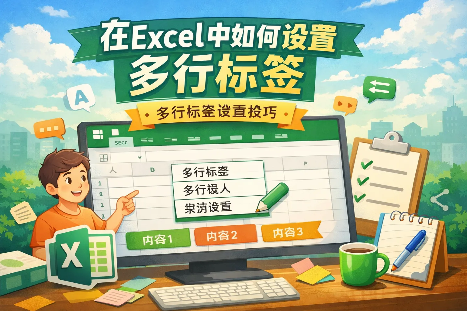 在excel中如何设置多行标签