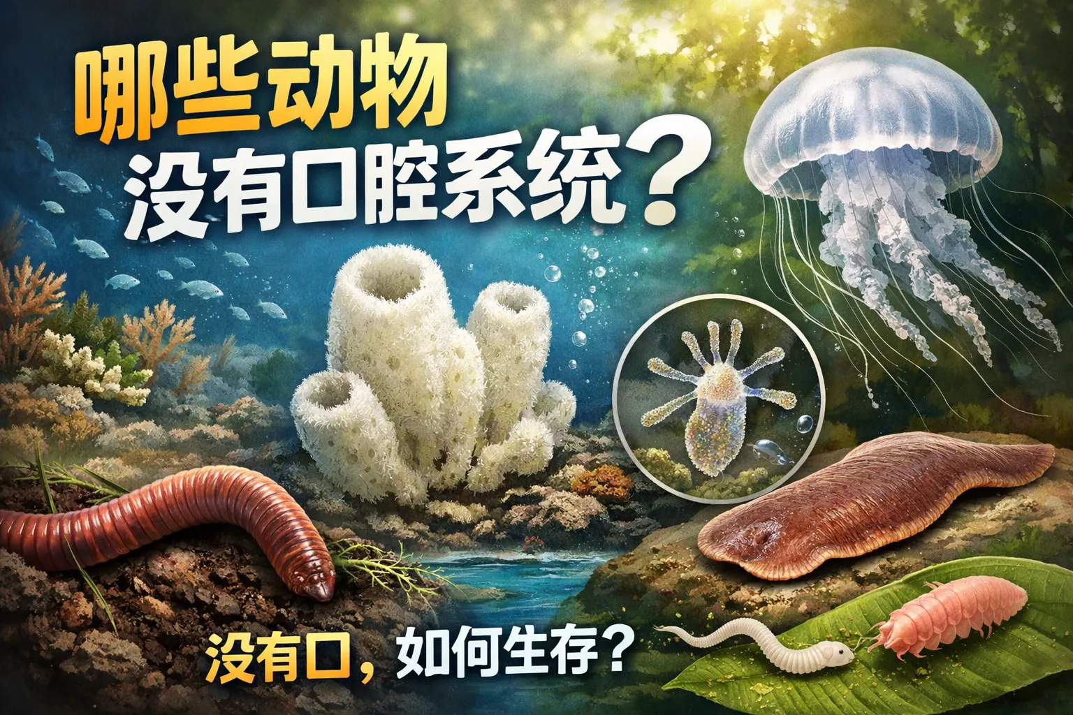 自然界中确实存在没有口腔系统的动物,它们通过体表吸收、细胞内消化或与共生微生物合作获取能量。典型代表包括海绵动物、寄生绦虫以及深海管状蠕虫。海绵动物属于原始结构阶段,绦虫是寄生适应导致的器官退化,而深海蠕虫则依赖共生细菌完成营养供给。这些动物的存在揭示了动物进化的多样路径,说明口腔系统并非多细胞动物生存的唯一方式。未来基因与生态研究将进一步深化对这类动物的理解。