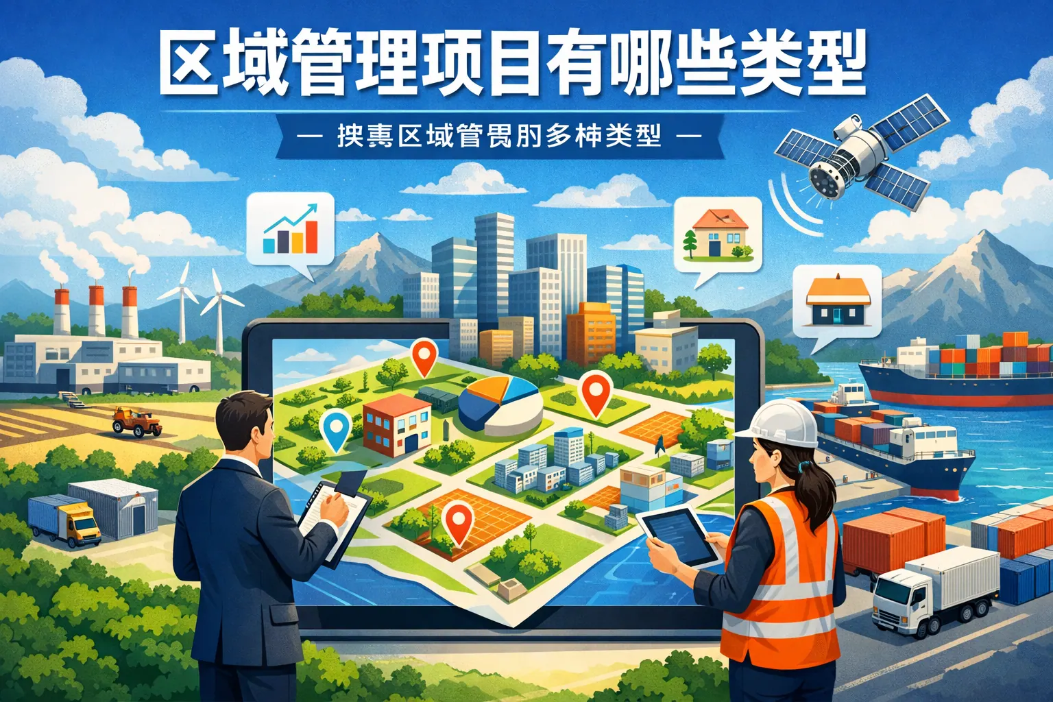 区域管理项目主要包括产业发展、基础设施建设、公共服务、生态环境、城市更新、乡村振兴以及招商引资等类型。这些项目围绕提升区域竞争力与可持续发展能力展开,在目标导向、投资规模和实施周期上各有差异。产业类强调经济增长,基础设施类夯实发展基础,公共与生态类注重社会与环境价值,城市更新与乡村振兴关注结构优化与均衡发展。未来区域管理将更加数字化、绿色化与协同化,强调数据驱动与跨区域合作。