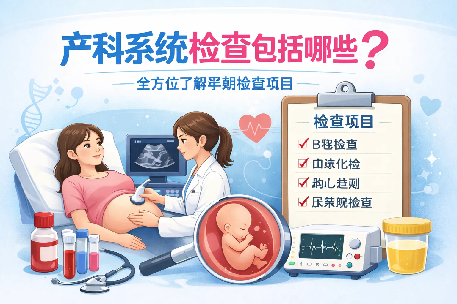 产科系统检查涵盖孕前评估、孕早中晚期分阶段筛查、胎儿结构排查、遗传与感染检测、高危妊娠专项监测以及产后恢复评估等内容,核心目标是通过连续性、系统化的医学管理动态监测母婴健康,及时识别并干预风险因素,从而降低围产并发症发生率,提高母婴安全水平。随着医学技术进步,产科系统检查正向个体化、数字化与精准化方向发展。