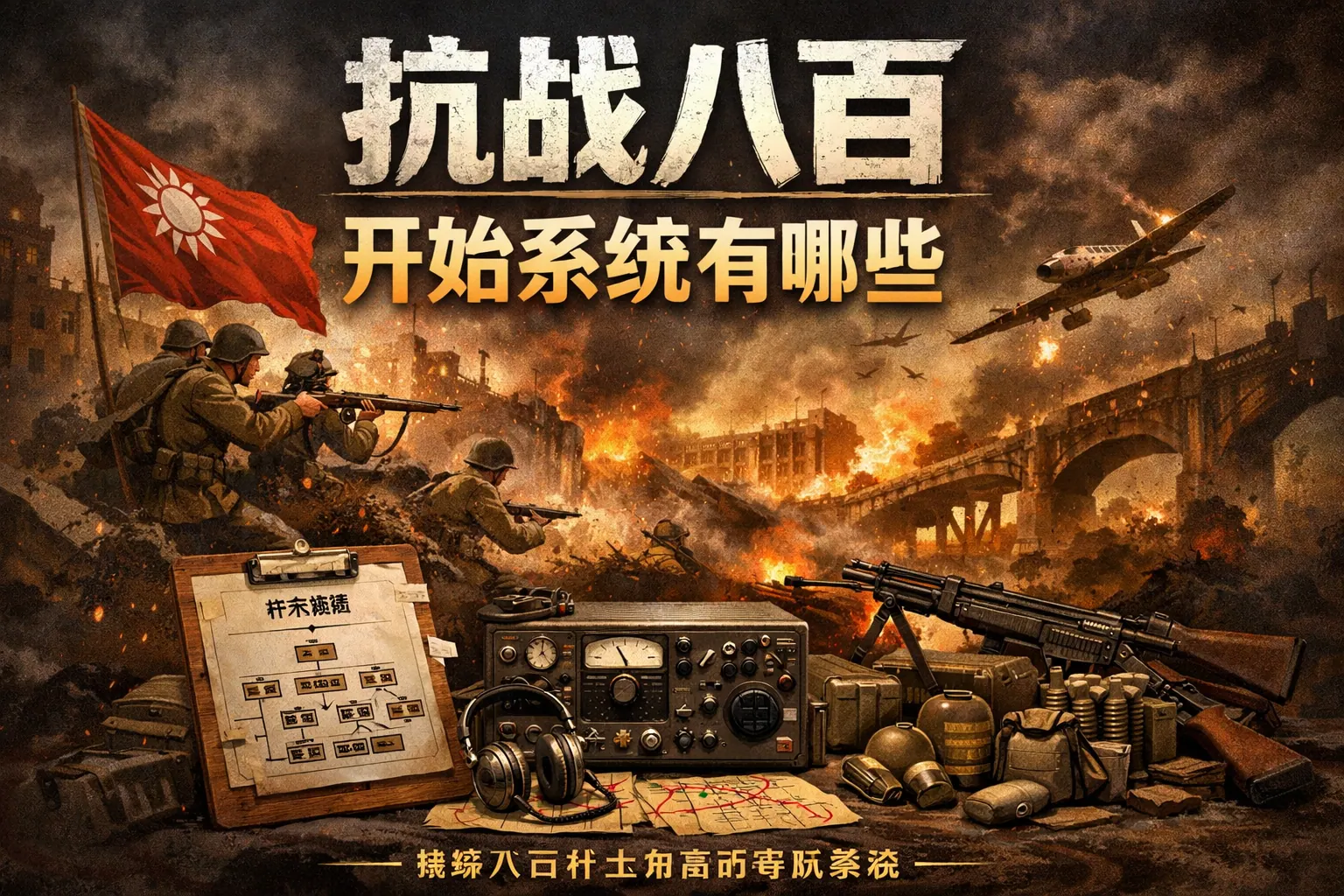 抗战八百开始系统通常指以1937年四行仓库战斗为开局的抗战题材系统小说设定,常见系统类型包括军火兑换、战功成长、基地建设、科技树与情报推演等。其中军火兑换和战功成长最为主流,强调火力强化与个人能力数值化提升。近年来该题材逐渐从单点战斗向长期战争与战略博弈扩展,系统规则更加复杂,强调历史逻辑与团队协作,呈现出更理性化的发展趋势。