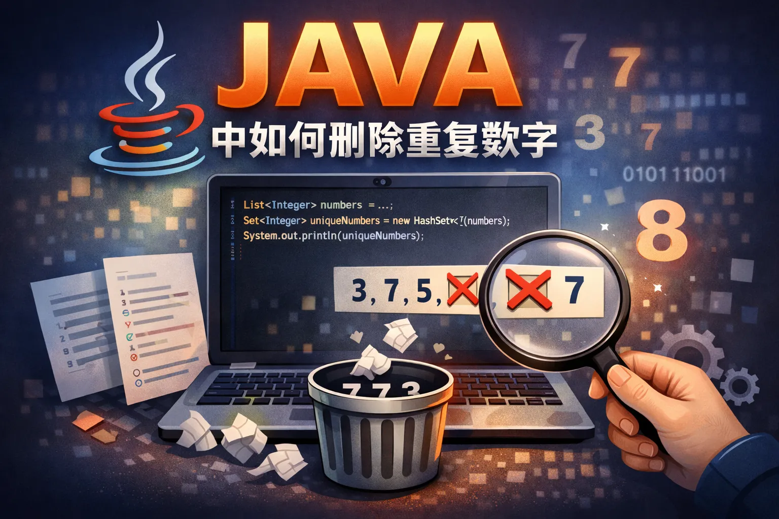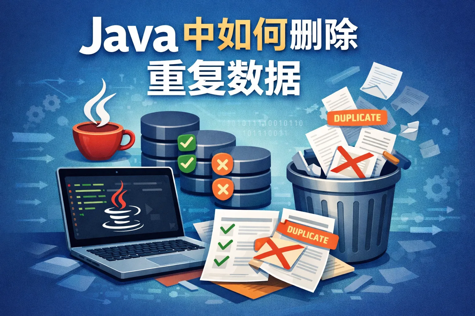 本文围绕Java删除重复数字展开,先讲解了核心逻辑与场景选型维度,对比了五大主流去重方案的性能指标与适用场景,给出不同业务场景的选型策略与性能优化技巧,同时点明常见坑点与避坑指南,帮助开发者高效完成Java去重开发