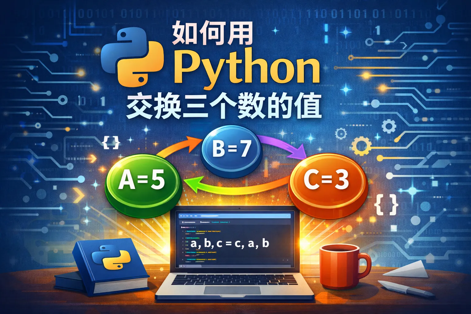 如何用python交换三个数的值