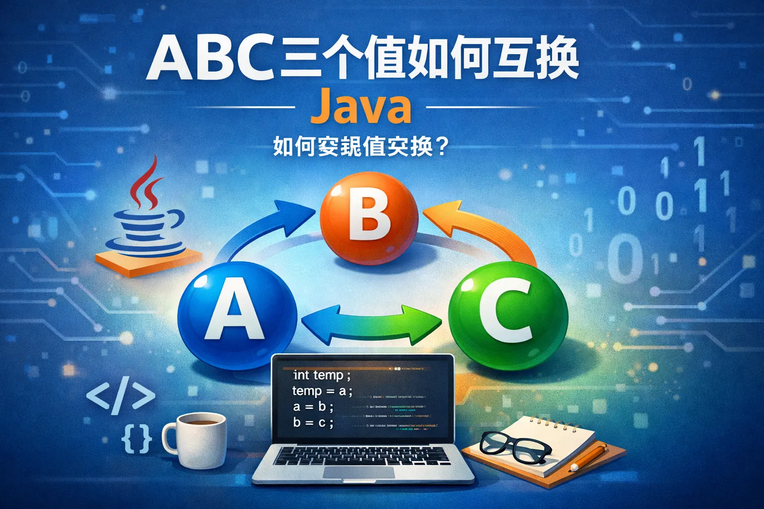 abc三个值如何互换java