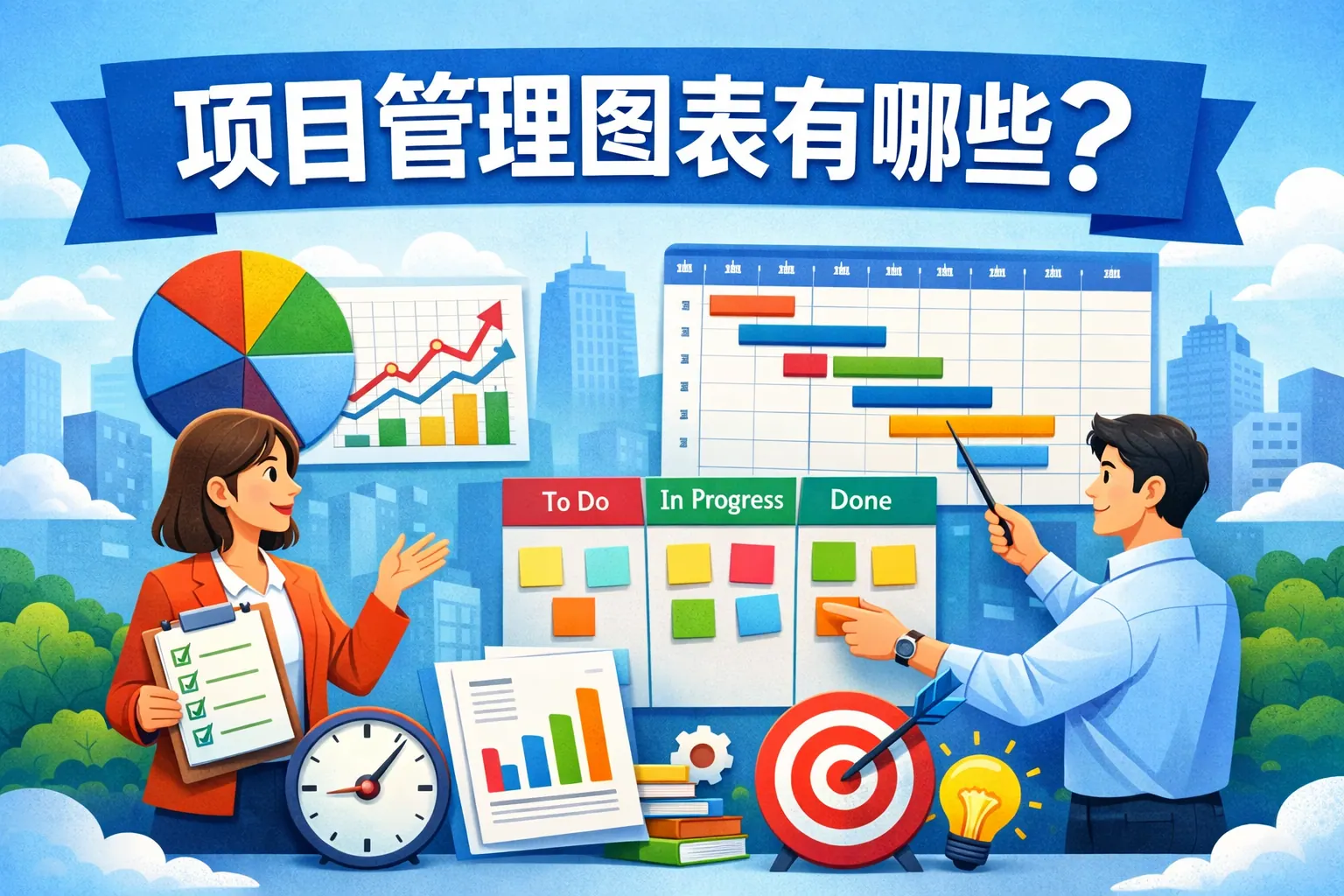 项目管理图表是实现项目进度控制、资源优化与风险管理的重要可视化工具,常见类型包括甘特图、网络图、燃尽图、看板图、资源负载图、风险矩阵与综合仪表盘等。不同图表在适用阶段与功能定位上存在差异,进度类图表强调时间安排,敏捷类图表关注迭代节奏,资源与风险类图表强化控制能力。合理组合使用多种项目管理图表,并结合数字化系统进行动态监控,有助于提升项目透明度与成功率。未来项目管理图表将向智能化与预测化方向发展。