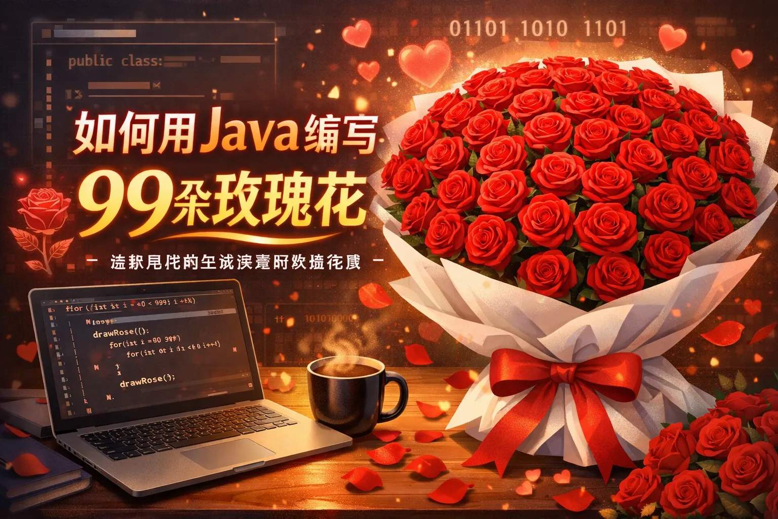 如何用java编写99朵玫瑰花