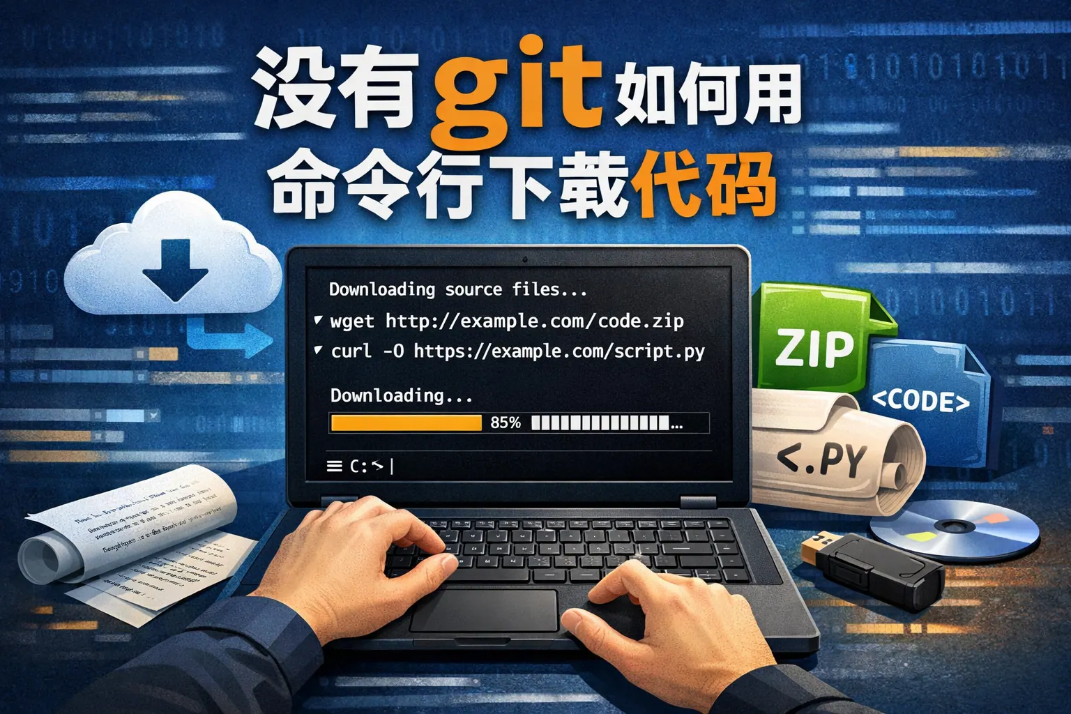 没有git如何用命令行下载代码
