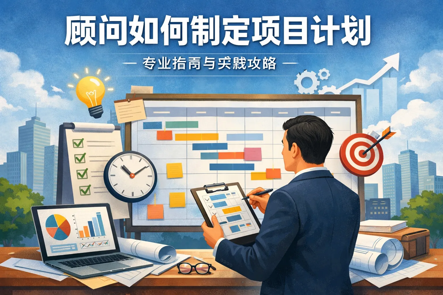 本文系统阐述顾问制定项目计划的完整方法:以成果为导向建立分层计划,用SOW与WBS澄清范围,结合关键路径与里程碑形成进度基线,完善资源与预算控制,通过RAID治理不确定性,并以沟通矩阵与会议节奏保障执行;同时匹配数字化工具以数据化落地,并展望智能化与滚动规划的趋势。