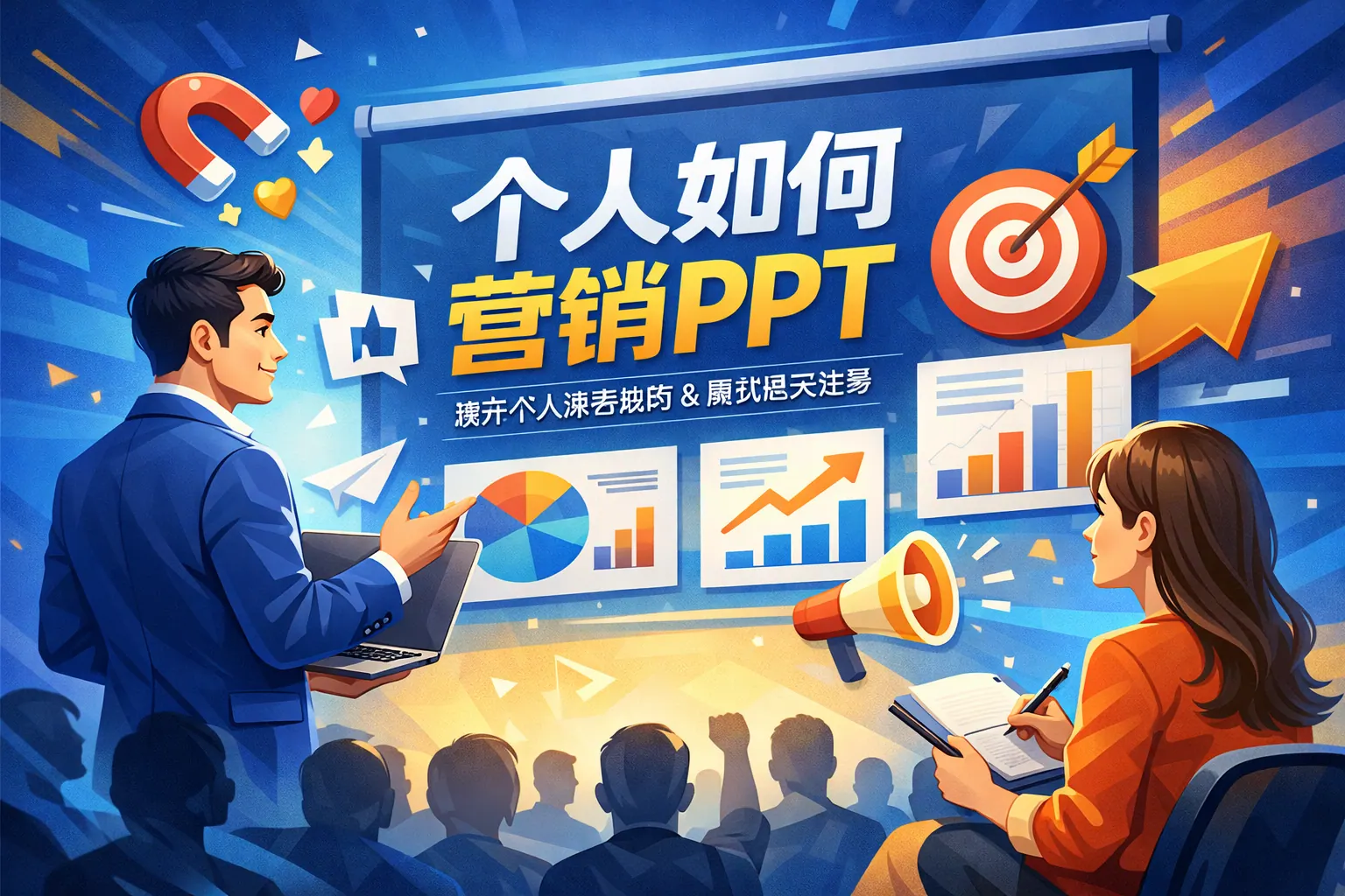 个人营销PPT的关键在于将PPT能力从单纯的制作技能升级为可产品化和可规模化的商业模式,通过精准定位目标人群、优化内容结构、建立个人品牌和多渠道分发体系,实现稳定获客与持续变现。高转化的PPT应围绕用户痛点构建问题与解决方案逻辑,并通过案例展示与信任背书提升成交率。未来随着数字化办公普及,表达与结构能力的重要性持续提升,个人只要强化定位与品牌建设,就能在竞争中建立长期优势。