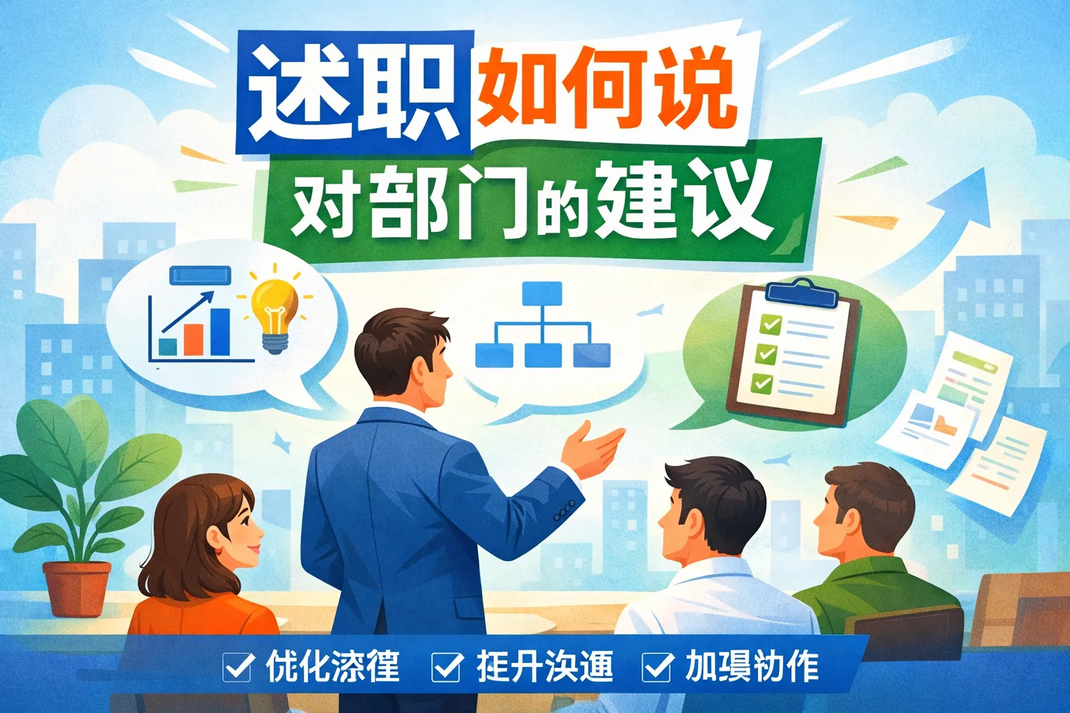 本文围绕述职时如何提出部门优化建议展开,明确了对齐目标、以解决问题为导向的核心原则,拆解了流程优化、资源配置、人才培养三类建议的表达框架,梳理了述职提建议的三大禁忌红线,通过对比表格展示错误与正确表达差异,结合权威报告数据强化观点,帮助职场人通过合理逻辑与数据支撑,提出易被管理层采纳的部门建议,搭建跨部门协作的落地闭环。