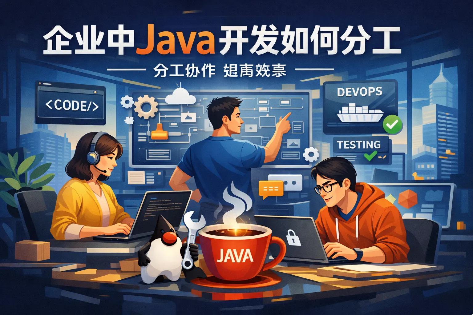 本文围绕企业Java开发分工展开实战分析,结合权威行业报告数据,指出垂直分工能显著提升开发效率,标准化接口文档可大幅缩短跨团队联调时长,同时针对不同规模团队提供了对应分工方案,中大型团队可采用垂直分工模型明确各角色权责,中小团队可通过轻量化弹性分工平衡成本与效能,最后提出了分工优化的量化考核维度与动态调整触发条件。
