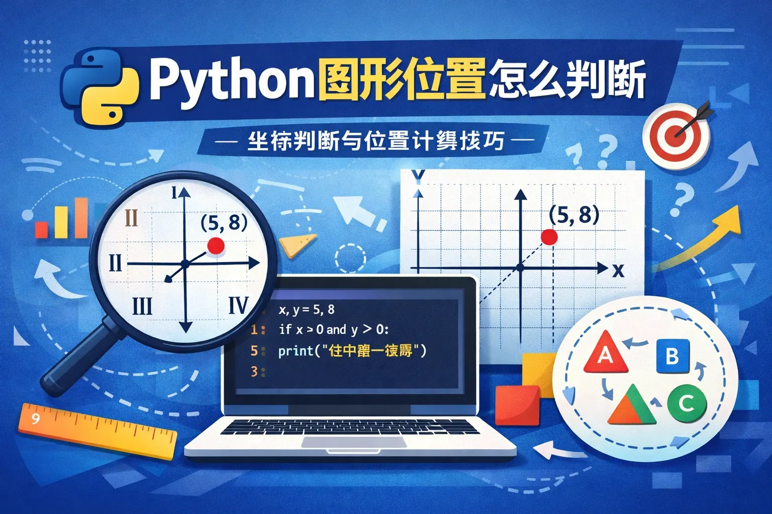 Python图形位置判断的核心在于基于坐标系统进行几何关系计算,包括点是否在图形内部、图形是否相交及区域边界检测等。常见方法包括矩形边界判断、圆形距离计算、多边形射线法及碰撞检测算法。在实际应用中,可结合Matplotlib、OpenCV、Pygame等工具实现高效判断。不同场景应根据性能与精度需求选择合适算法,复杂系统可采用分层检测策略提升效率。未来趋势将向高性能计算与智能化空间分析方向发展。