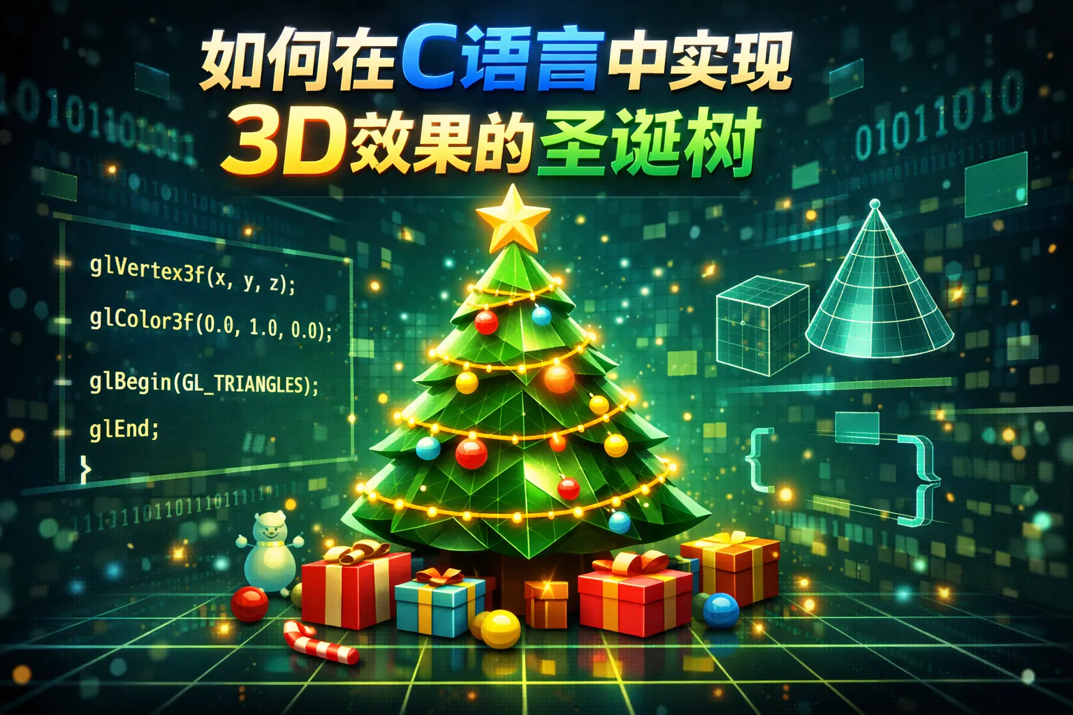 在 C 语言中实现 3D 效果的圣诞树,核心在于三维数学建模、旋转矩阵变换与透视投影计算,通过将三维坐标映射到二维屏幕并结合字符或图形库渲染,即可形成具有立体感和动态旋转效果的圣诞树。文章系统讲解了圆锥建模方法、旋转算法实现、透视投影原理、ASCII 字符渲染技巧以及使用图形库增强效果的方式,并给出完整示例代码框架,帮助开发者从底层理解 3D 图形在 C 语言中的实现逻辑。