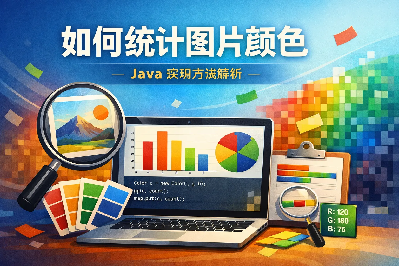 本文从核心逻辑、原生API实现、第三方库应用、优化策略、应用场景等维度,详细讲解了Java统计图片颜色的全流程,对比了不同实现方案的成本与性能,结合行业报告给出了适配不同场景的落地建议,帮助开发者快速搭建高效合规的颜色统计模块。