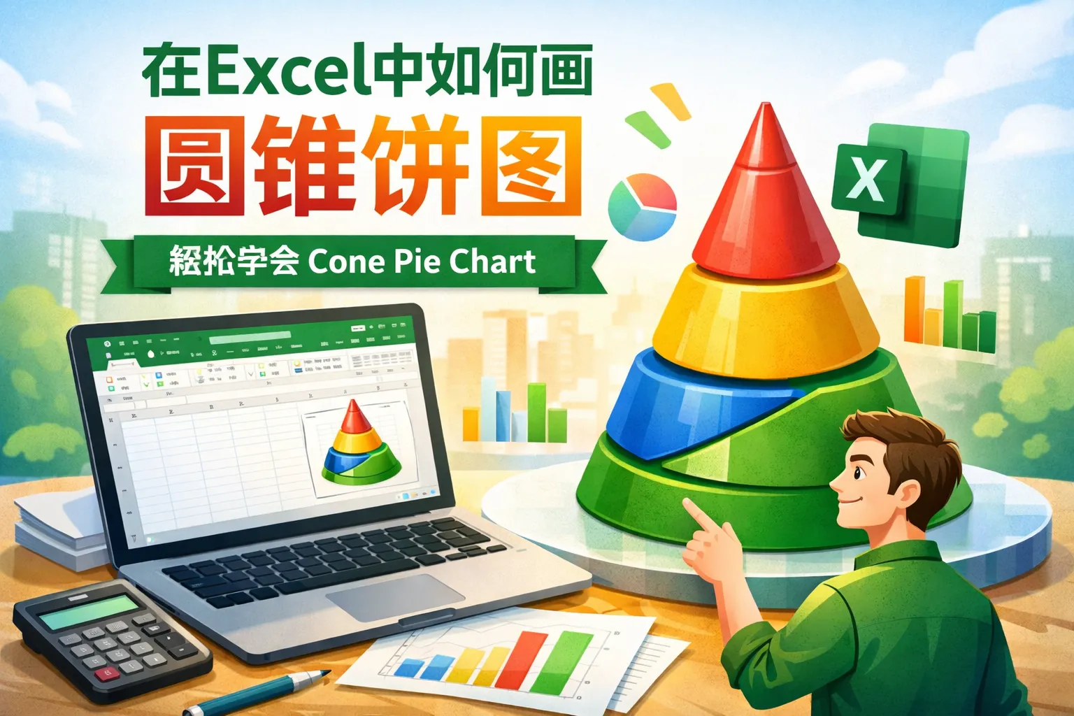 在excel中如何画圆锥饼图