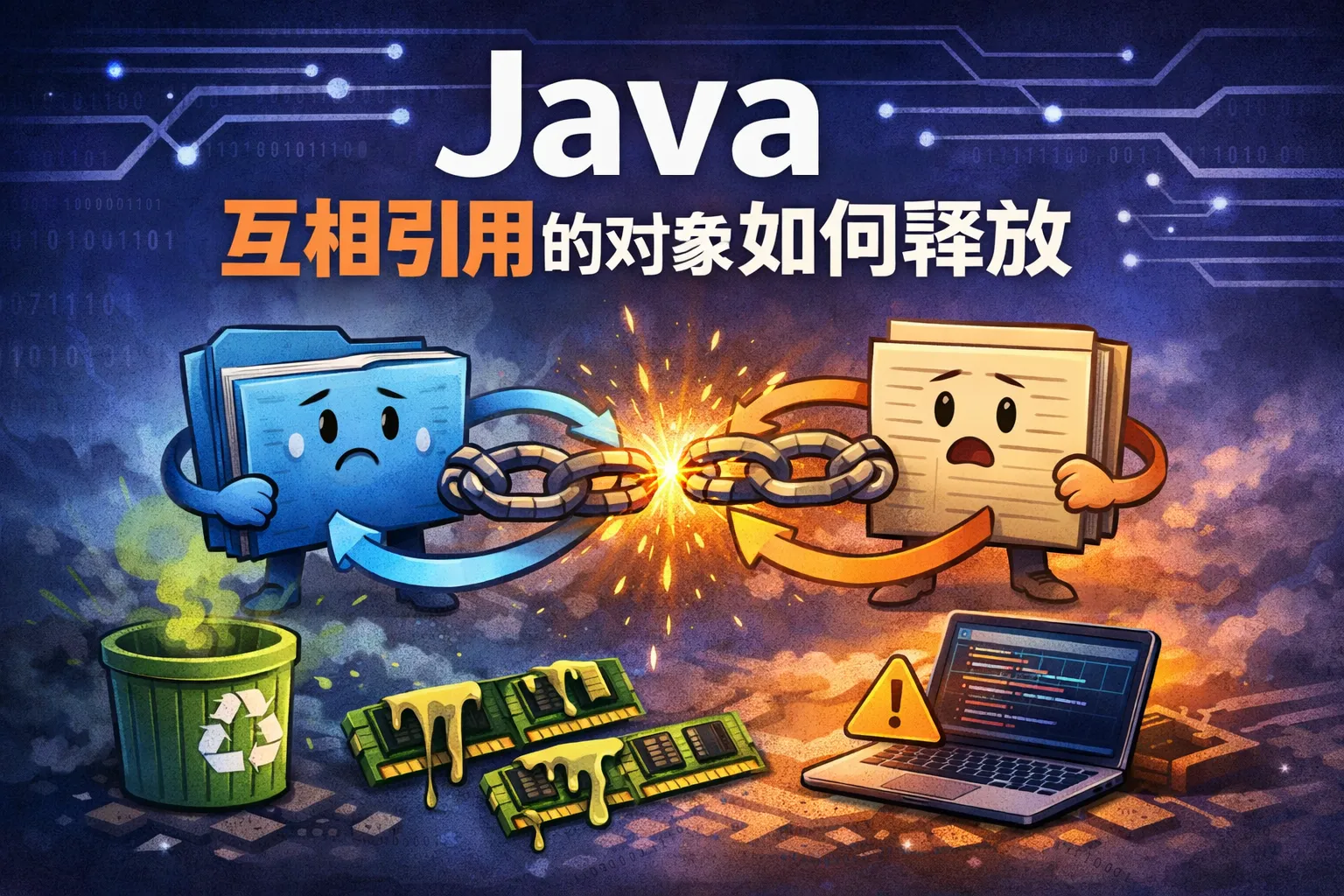本文讲解Java循环引用对象释放的原理和实战方案,指出循环引用本身不会阻碍JVM可达性分析回收,只有与GC Roots绑定且未断开时才会引发内存泄漏,对比了主流垃圾回收器处理循环引用的差异,并提供局部变量、静态变量、跨节点循环引用的针对性释放方法,通过优化可使内存占用下降38.7%,业务停顿时间缩短59.5%。