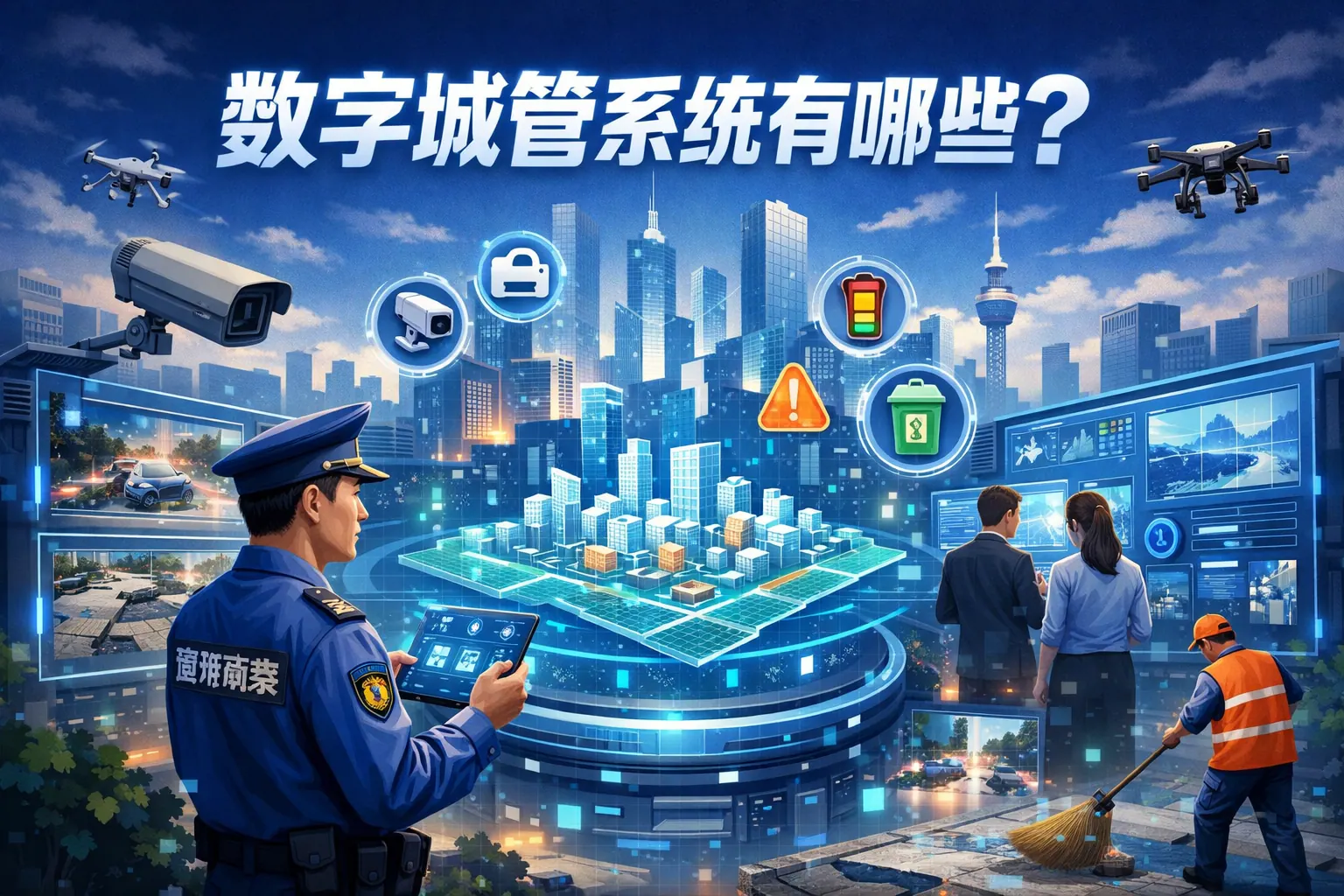 数字城管系统主要由基础支撑平台、监督指挥系统、网格化管理系统、视频与物联感知系统、数据分析决策系统、公众服务系统和运维保障系统等组成,形成覆盖问题发现、处置、分析与决策的闭环管理体系。通过GIS、网格划分、智能感知和数据分析等技术手段,数字城管实现城市运行的精细化、可视化和智能化管理。未来其发展趋势将向数据整合、智能预判和多部门协同方向持续升级。