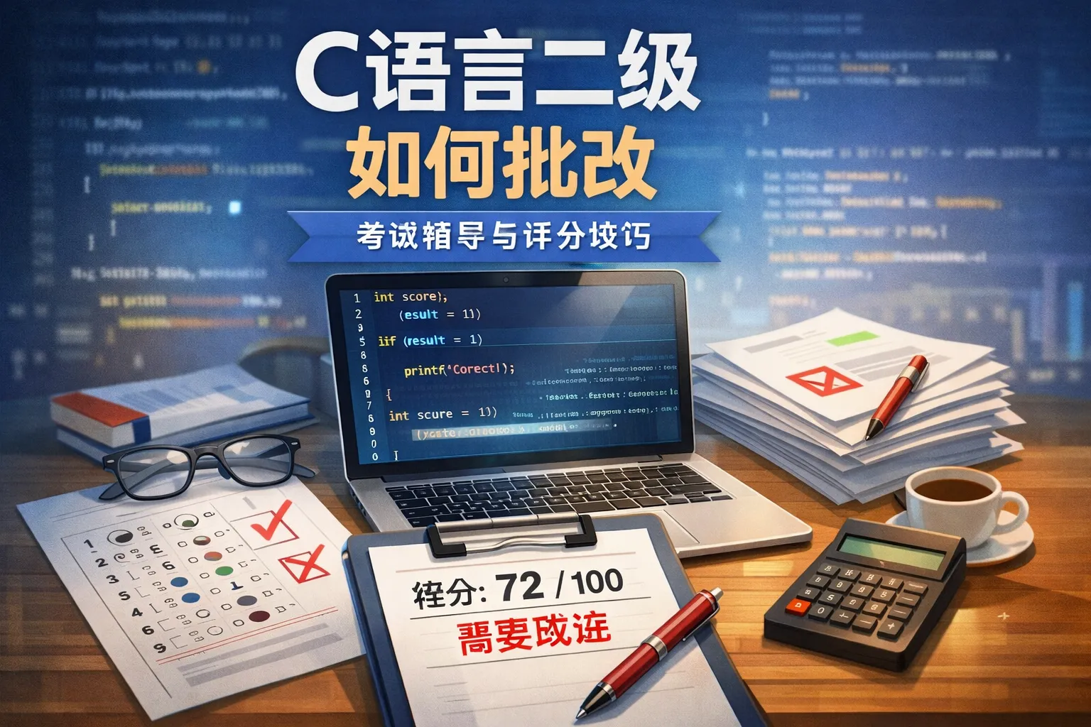 本文围绕C语言二级考试的批改规则展开,解析机器自动批改加人工复核的双轨机制,拆解客观题与主观题的评分细节,梳理常见失分误区及规避方法,并结合批改规则给出针对性备考策略与答题技巧,帮助考生快速提升得分率,减少隐性失分。