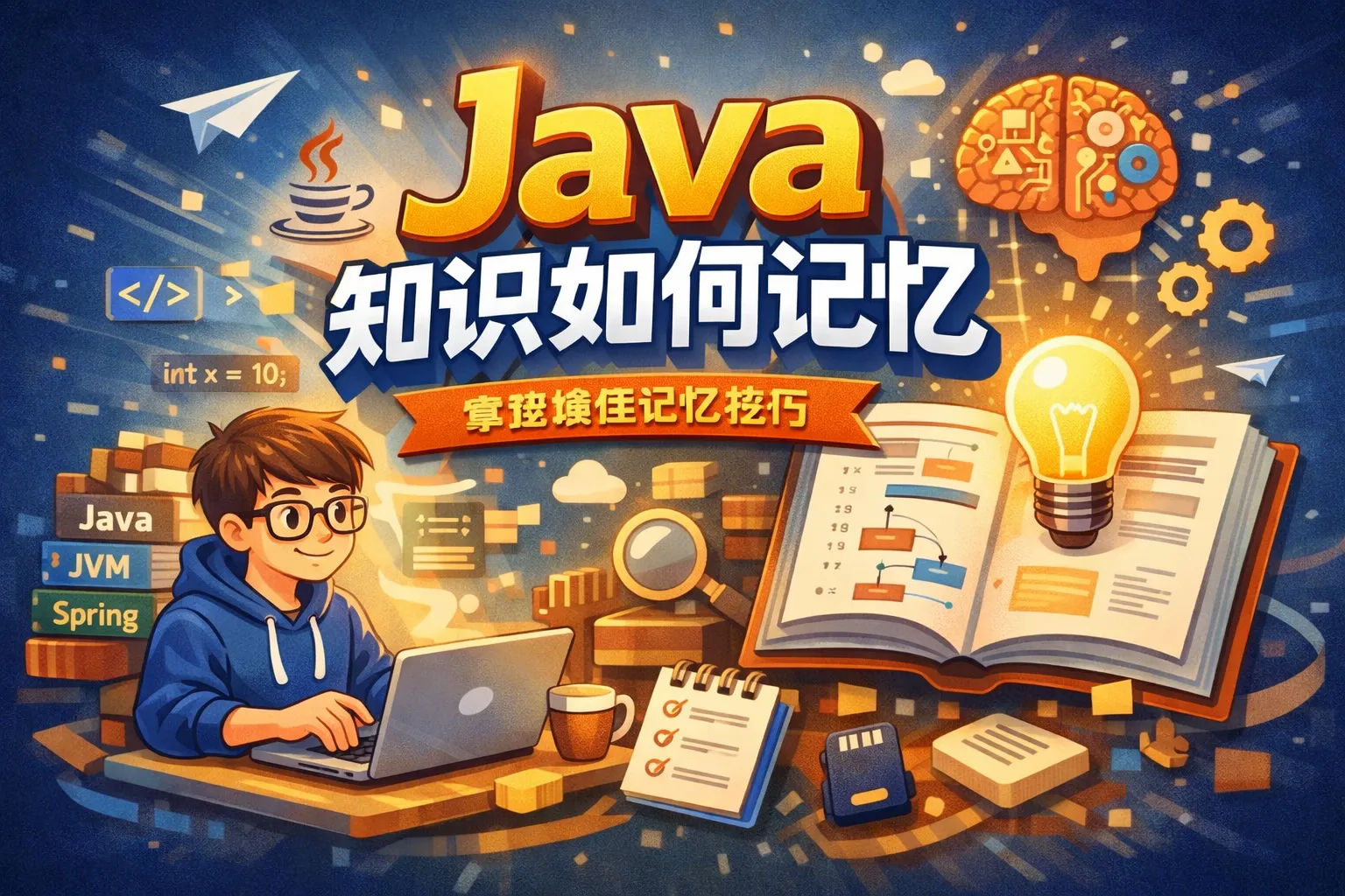 本文讲解了Java语言的高效背诵方法,核心是通过分模块拆解降低记忆难度,用主动记忆替代机械背诵,结合可视化锚点、场景复现巩固记忆,搭建循环复习体系对抗遗忘,同时借助工具提升背诵效率,帮助学习者高效掌握Java核心知识