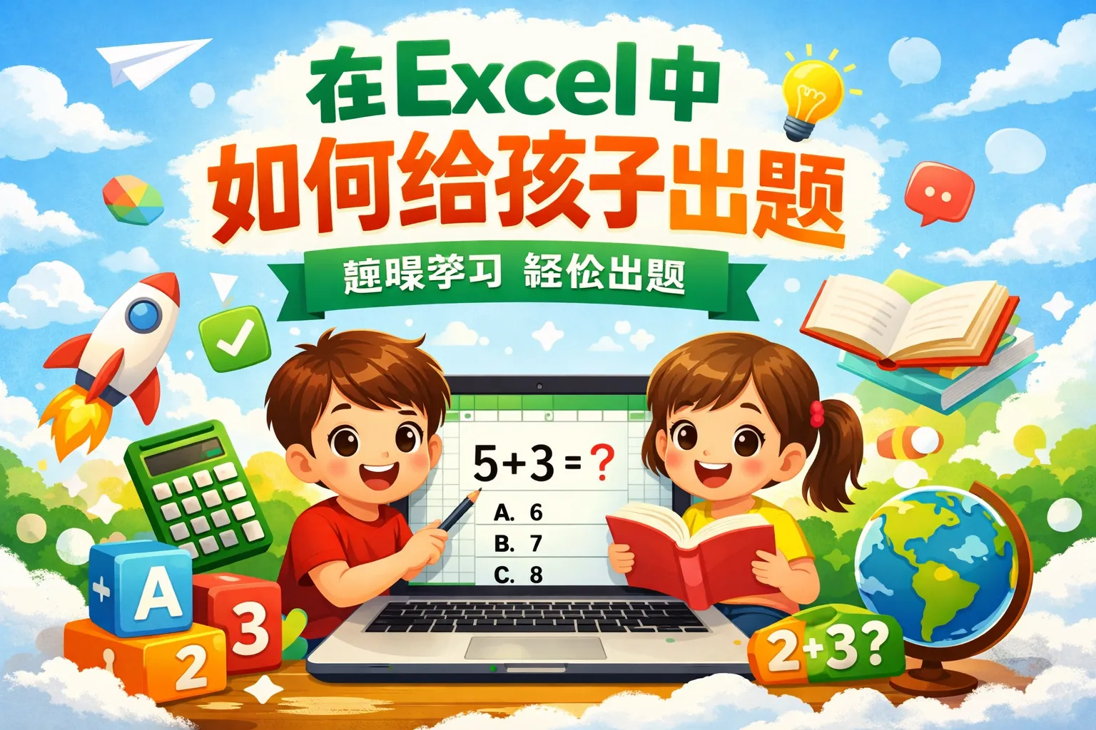 在excel中如何给孩子出题