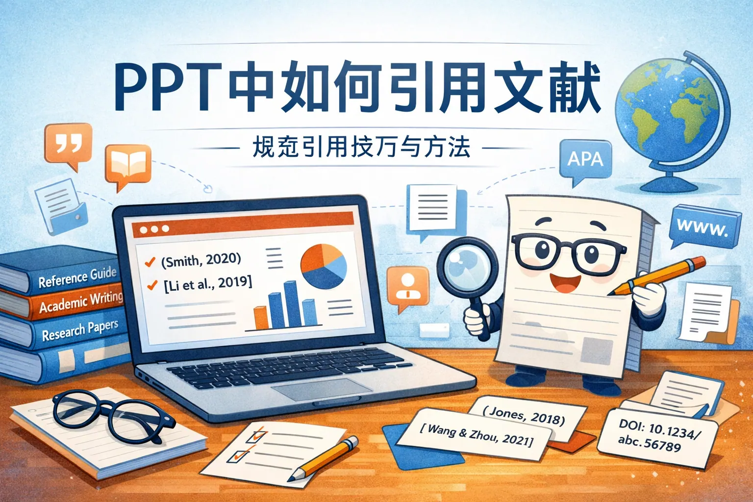 本文系统讲解了 PPT 引用文献如何标注的问题,从必要性、基本原则到正文、页脚与参考文献页的具体做法进行了全面说明。文章强调,PPT 文献标注应以清晰、统一、可追溯为核心,在不同使用场景下灵活调整详细程度,同时避免常见的遗漏与混乱错误。通过合理选择作者年份制、编号制或来源说明式标注方式,可以在不影响演示效果的前提下,显著提升 PPT 的学术规范性与专业可信度。