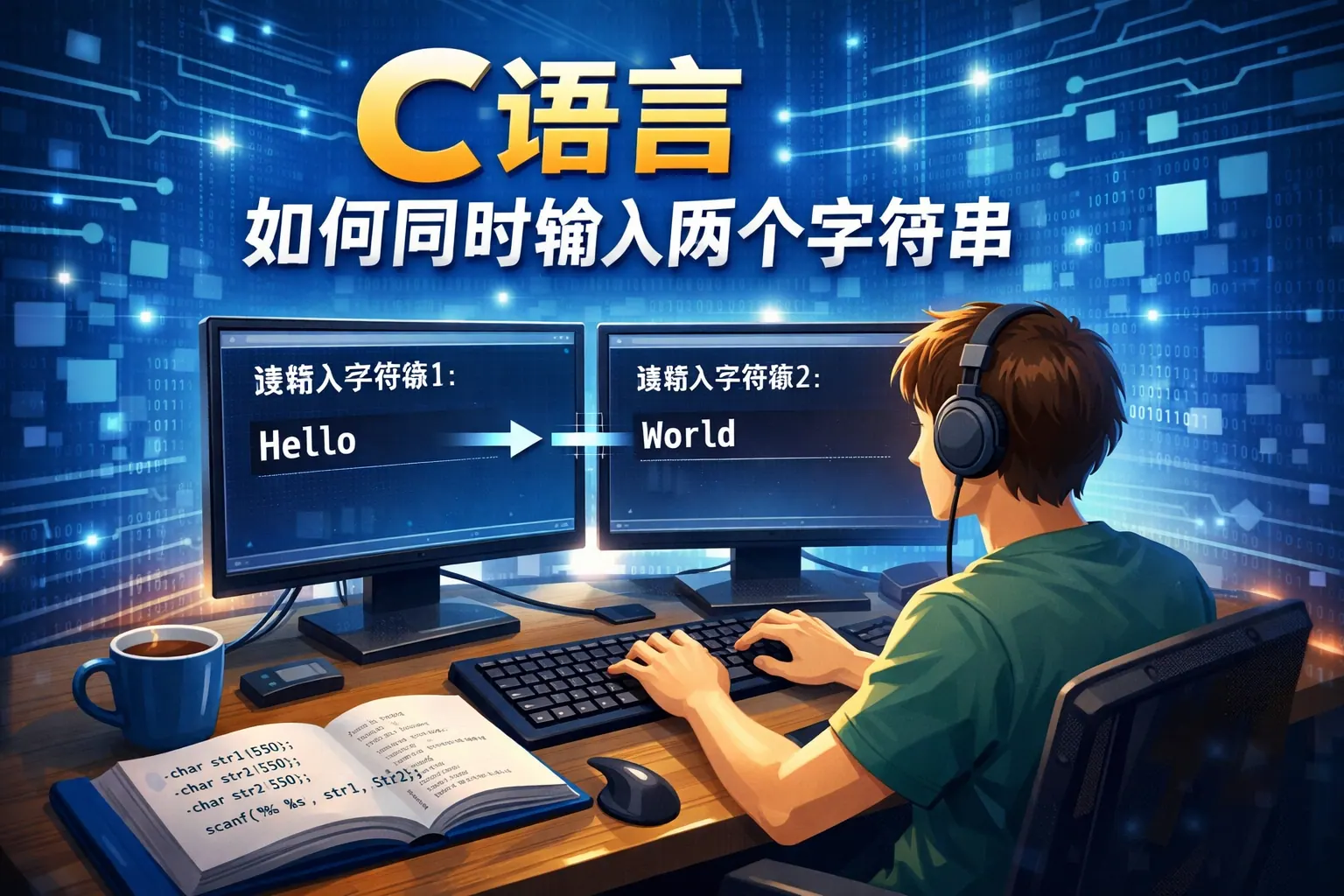 c语言如何同时输入两个字符串