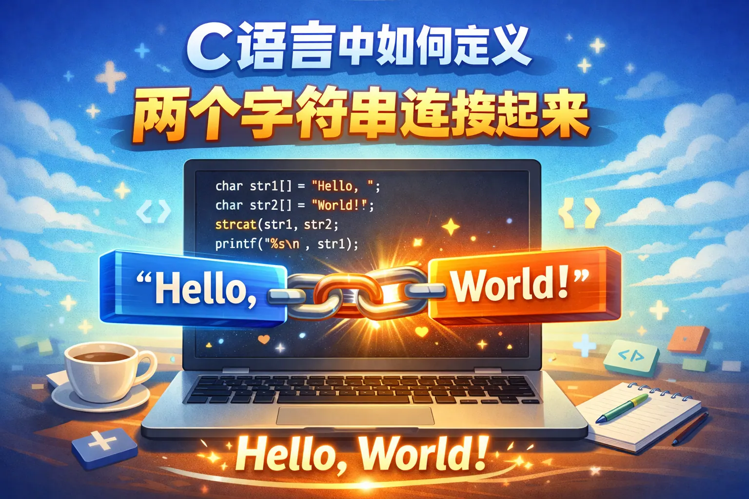 c语言中如何让两串字符变成一个