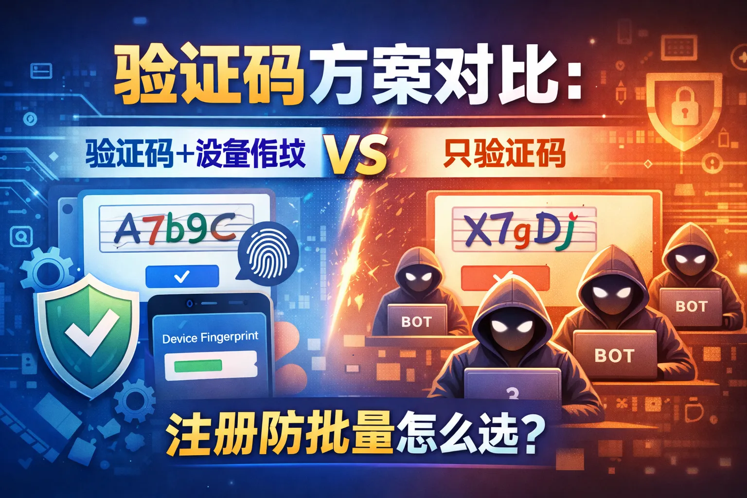 验证码方案对比:验证码+设备指纹vs只验证码,注册防批量怎么选?