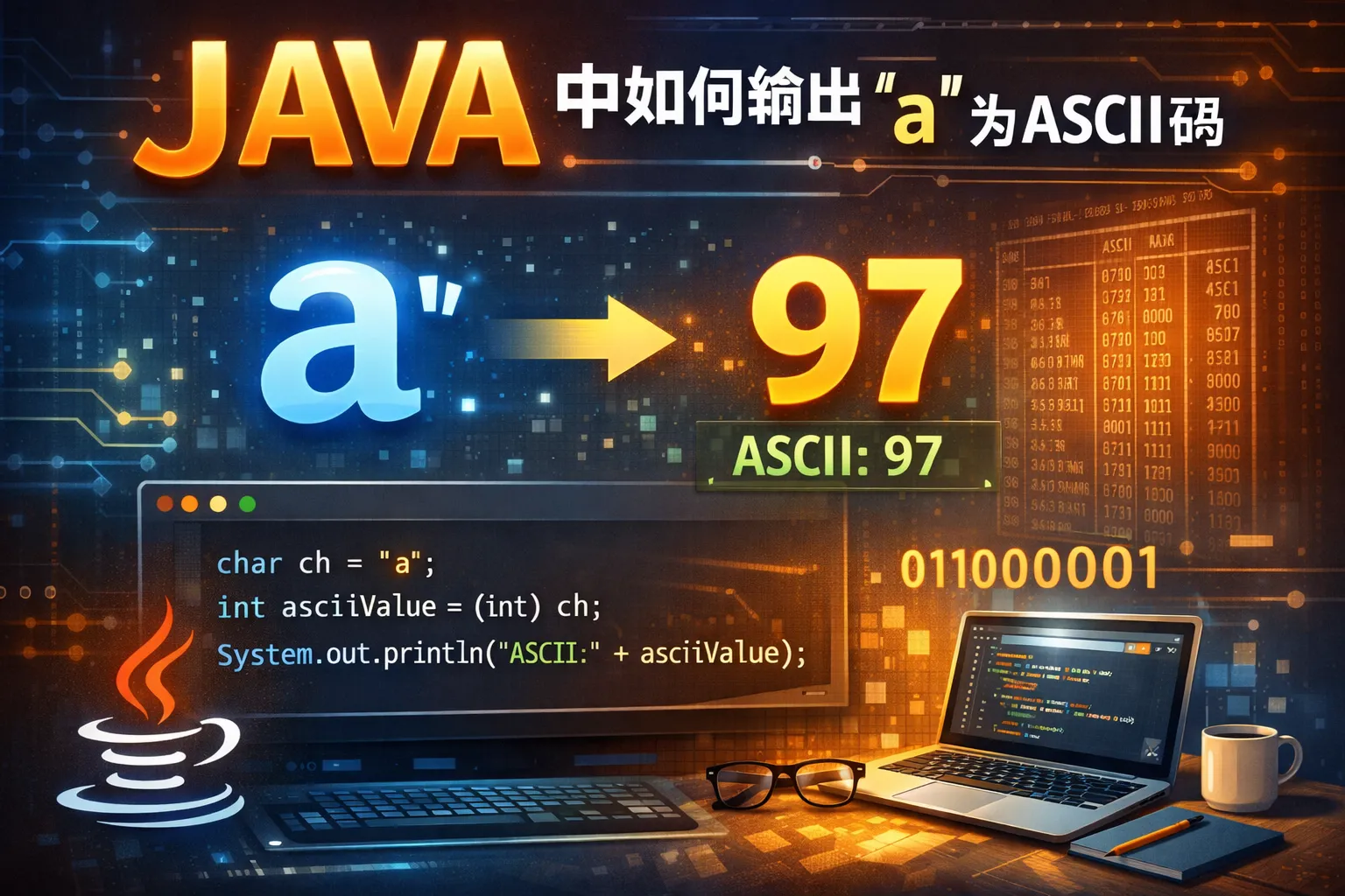 java中如何输出a为ascii码