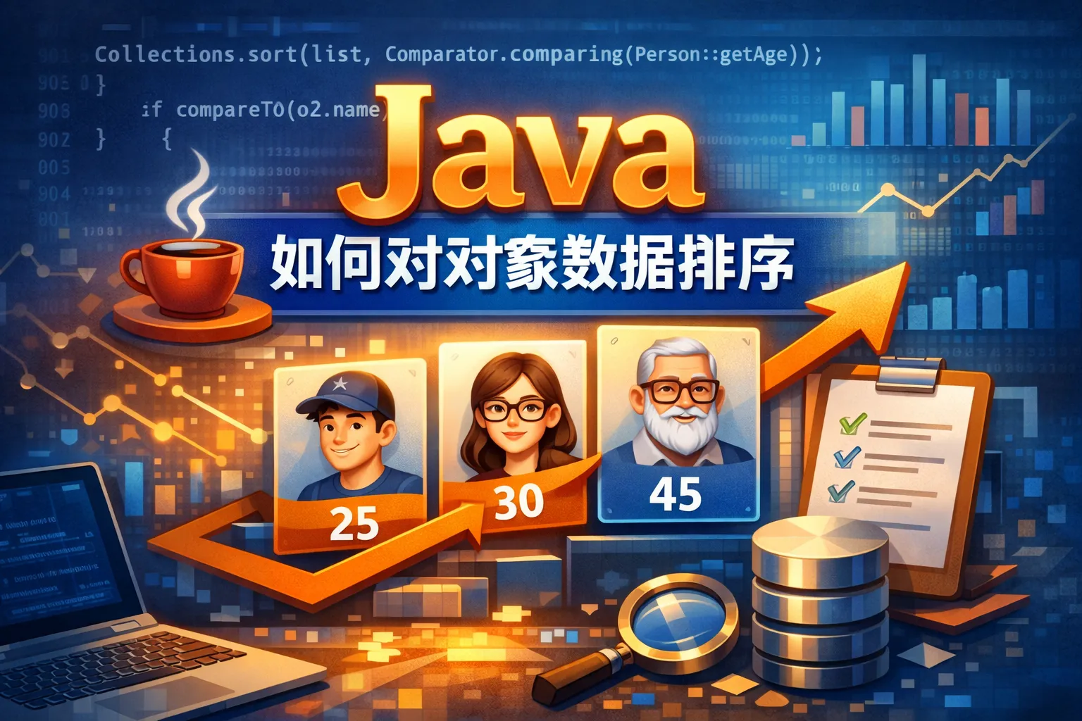 这篇文章围绕Java对象排序展开,从核心底层逻辑入手,介绍了Comparable原生接口和Comparator策略模式两种主流排序方案,通过对比表格展示了两种方案的适用场景和优劣势,并结合权威行业报告数据,讲解了流式排序和企业级性能优化实战方法,帮助开发者根据业务需求选择高效合规的排序策略。